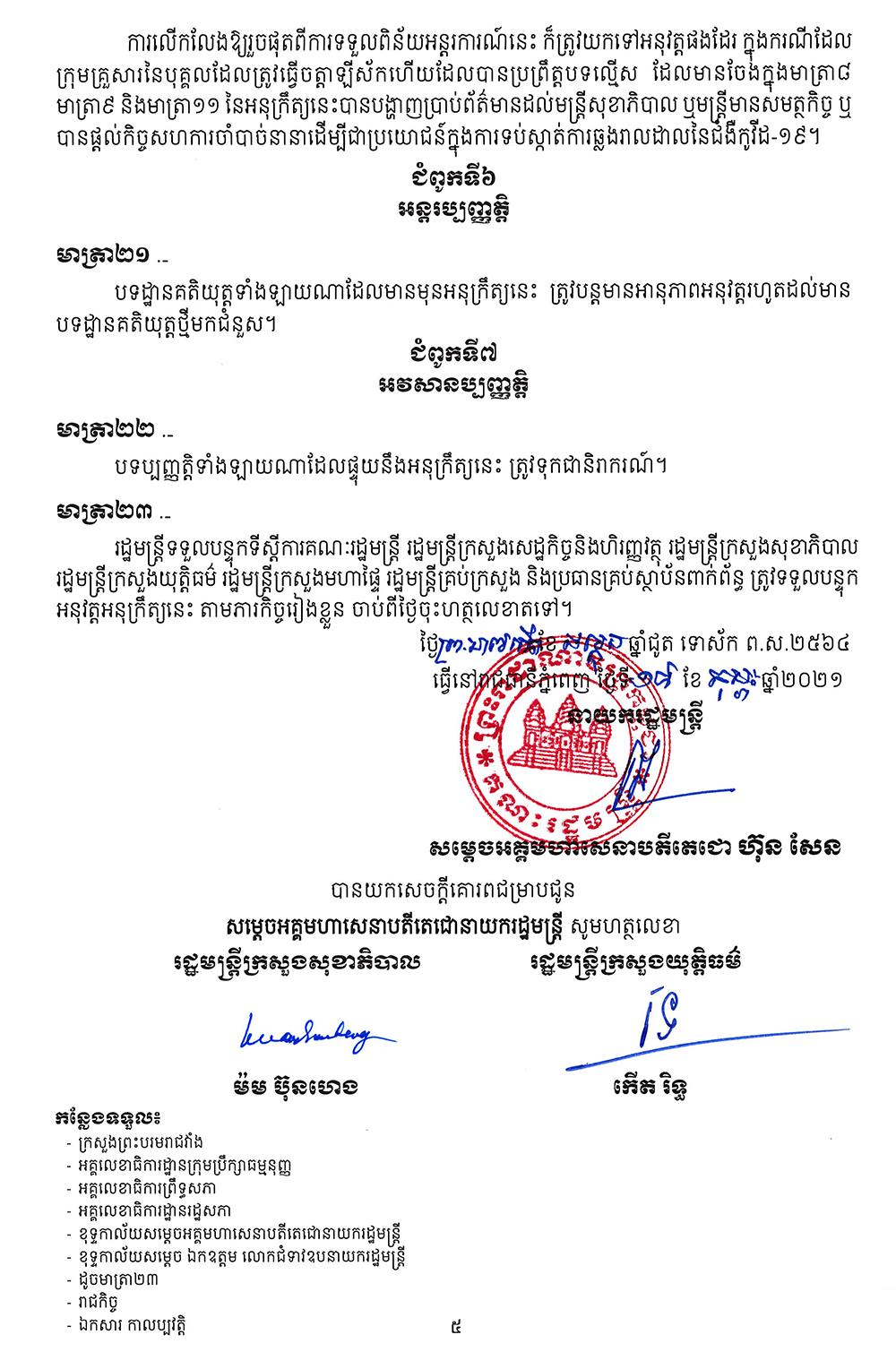 អនុក្រឹត្យថ្មី ពិន័យរហូតដល់ ៥០លានរៀល ចំពោះមេខ្យល់នាំមនុស្សឆ្លងដែនគេចការធ្វើចត្តាឡីស័ក ហើយអ្នកគេចវេះមិនធ្វើចត្តាឡីស័ក ពិន័យរហូតដល់៥លានរៀល