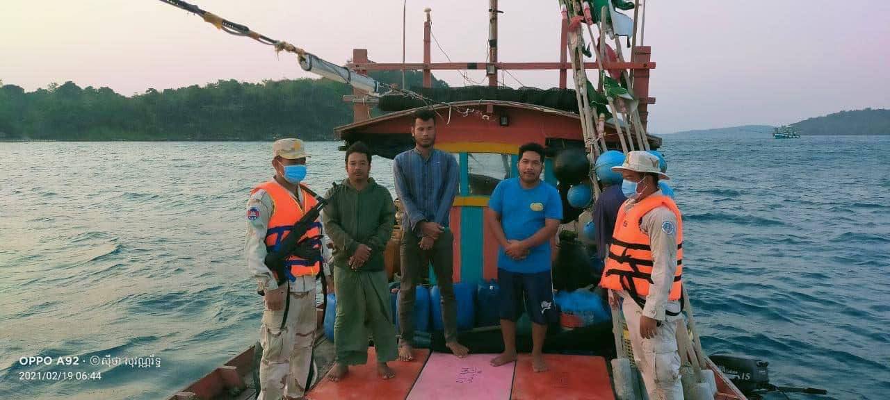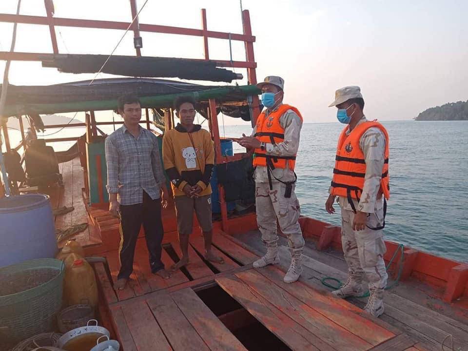 ខេត្តកោះកុង៖ ឯកឧត្តម ឧត្តមនាវីឯក អ៊ុក សីហា មេបញ្ជាការរងកងទ័ពជើងទឹក និងជាមេបញ្ជាការមូលដ្ឋានសមុទ្រឲ្យដឹងថា អនុវត្តន៍តាមបទបញ្ជាដ៍ខ្ពស់របស់សម្តេចអគ្គមហាសេនាបតីតេជោហ៊ុន សែន លើវិធានការ បង្ការជំងឺកូវីដ១៩ និងបទបញ្ជាពីឯកឧត្តម នាយឧត្តមនាវី ទៀ វិញ អគ្គមេបញ្ជាការរង នៃកងយោធពលខេមរភូមិន្ទ មេបញ្ជាការកងទ័ពជើងទឹក កម្លាំងនាវាល្បាត មូលដ្ឋានសមុទ្រ ប្រចាំការទិសខេត្តកោះកុង កាលពីថ្ងៃទី១៨ ខែកុម្ភៈ ឆ្នាំ២០២១បានស្ទាក់ឃាត់ខ្លួនពលរដ្ឋខ្មែរចំនួន០៥នាក់ ដែលធ្វើដំណើរតាមទូកឆ្លងដែនមកពីប្រទេសថៃ ចូលមកកម្ពុជា គេចពីការធ្វើចត្តាឡីស័ក ក្នុងនោះមាន៖