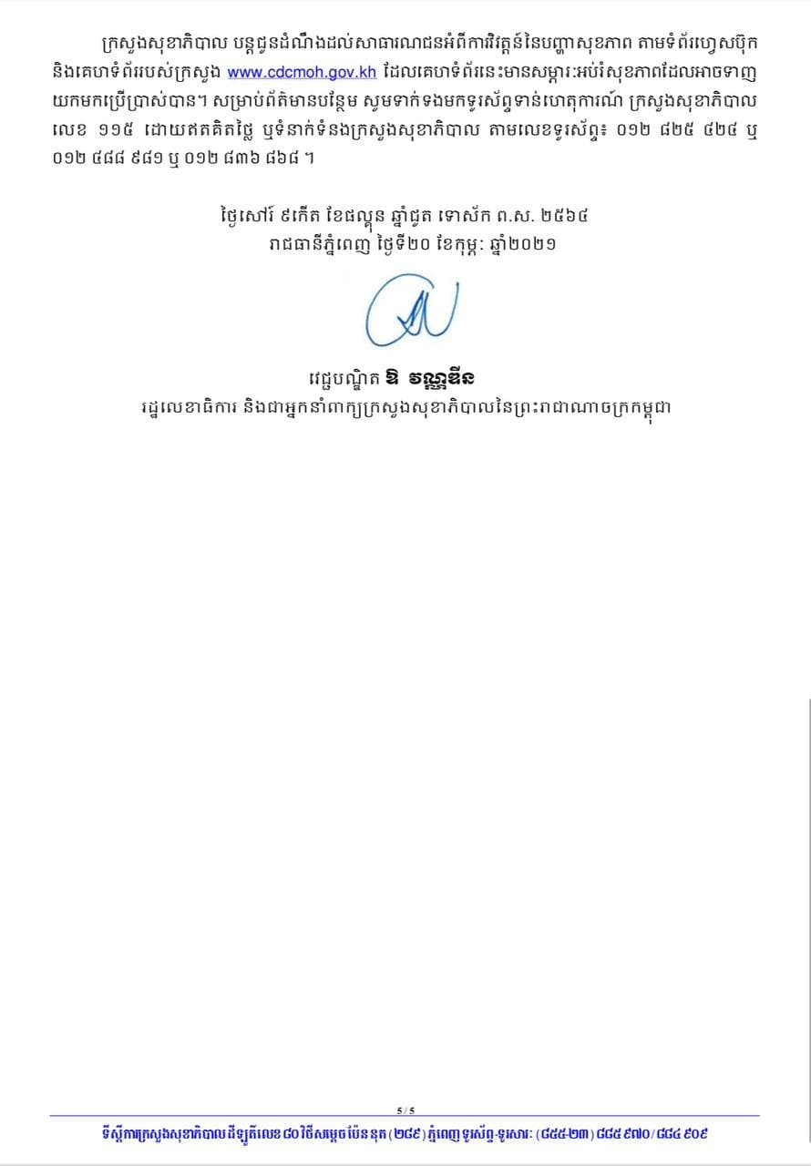 ព្រឹកនេះក្រសួងសុខាភិបាល រកឃើញករណីវិជ្ជមានកូវីដ១៩ថ្មី ចំនួន ១៧នាក់ទៀត ក្នុងនោះ ១៥នាក់ពាក់ព័ន្ធនឹងព្រឹត្តិការណ៍សហគមន៍២០កុម្ភៈ