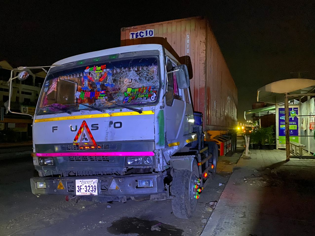 សំណាងណាស់មិនបុកត្រូវមនុស្ស! រថយន្តកុងតឺន័របុករះបង្គោលចរាចរណ៍ បង្គោលប៉ាណូ និងបង្គោលភ្លើងបំភ្លឺផ្លូវ បាក់រាបដល់ដី ហើយចុះពីលើឡានដាក់មេប្រូចបាត់
