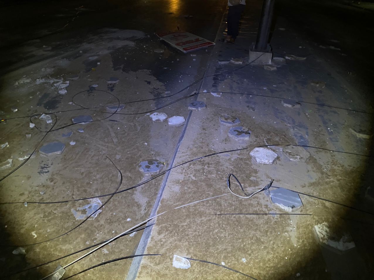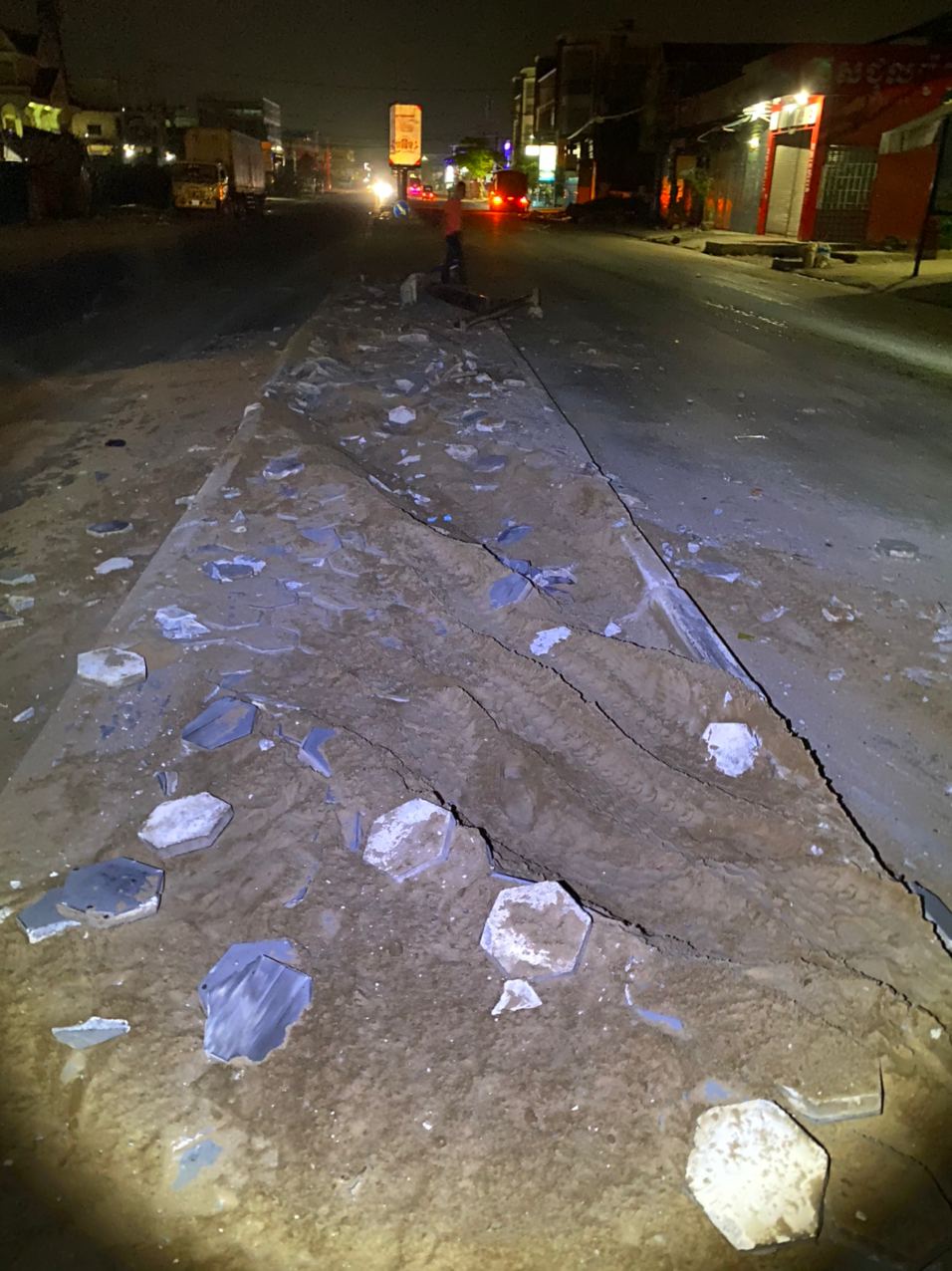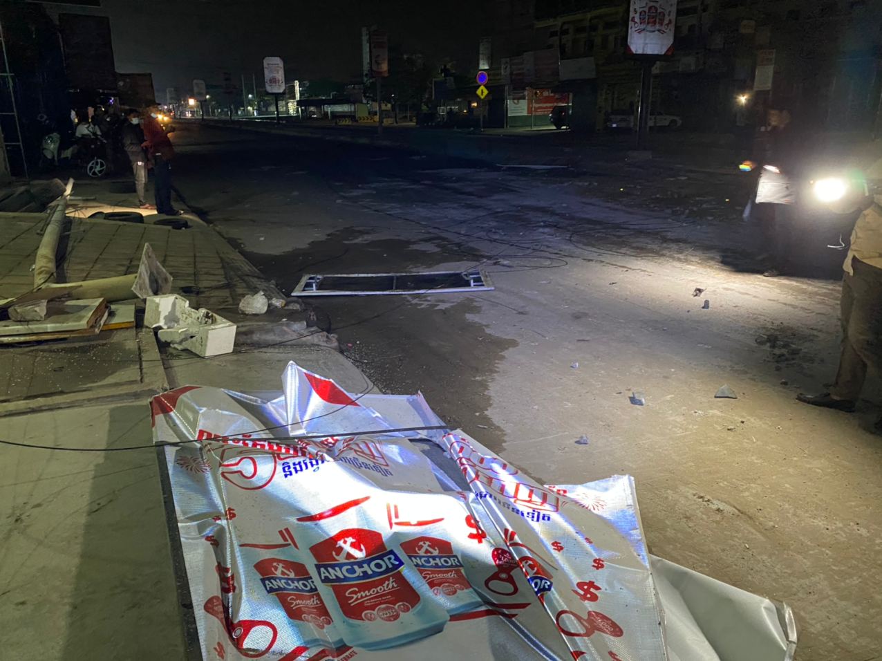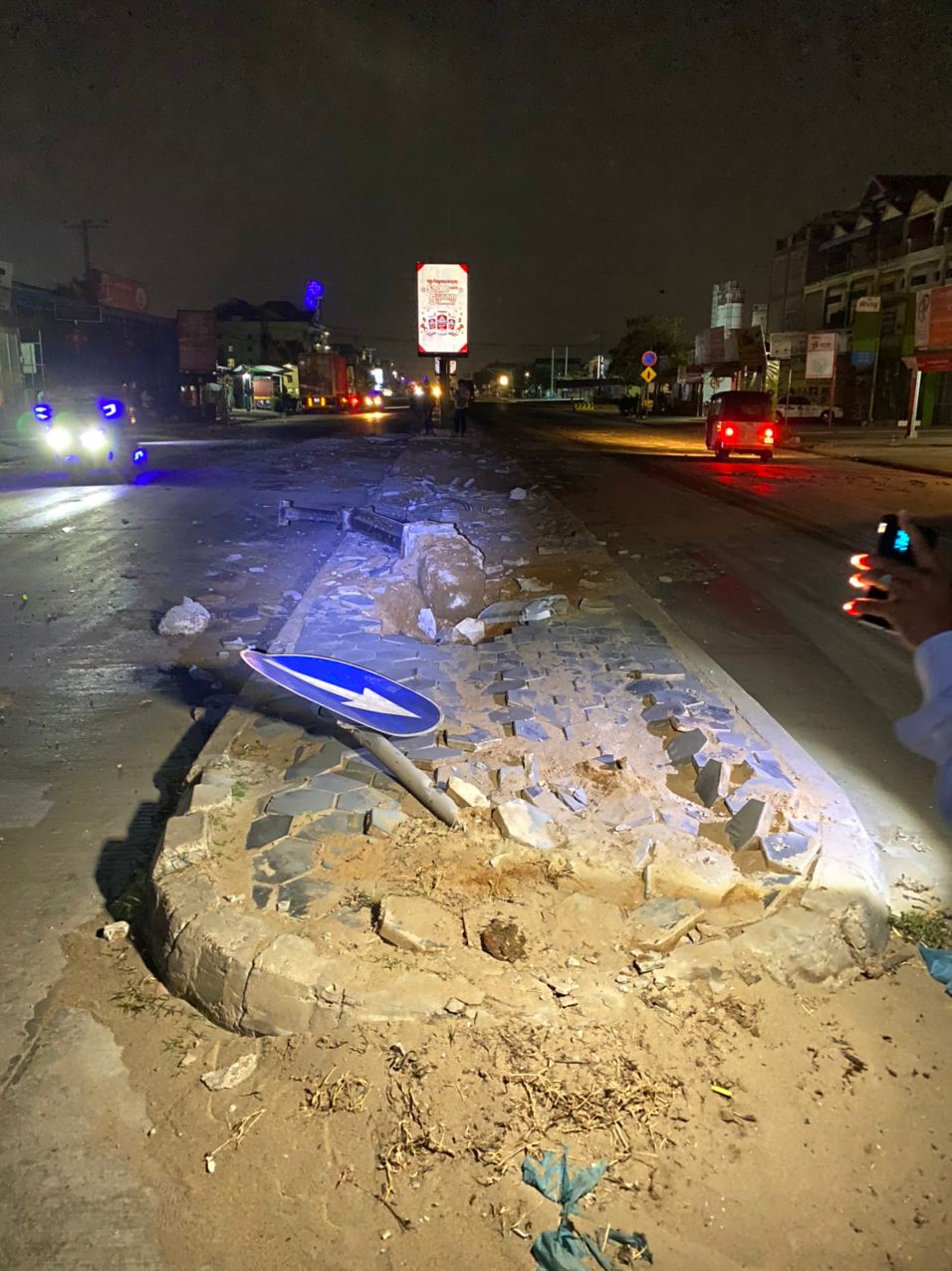 រាជធានីភ្នំពេញ ៖ បង្គោលចរាចរណ៍ បង្គោលប៉ាណូ និងបង្គោលភ្លើងបំភ្លឺផ្លូវ បាក់រាបដល់ដី ព្រមទាំងឥដ្ឋការ៉ូឡារៀបនៅលើខឿនចែកទ្រូវផ្លូវ រងការខូចខាតបែកបាក់រាយប៉ាយពេញផ្លូវ ដែលបង្កឡើងដោយរថយន្តសណ្ដោងកុងតឺន័រមួយគ្រឿង បោះពួយលឿនពេក រេចង្កូតឡើងលើខឿនចែកទ្រូវផ្លូវបុករះប៉ើងខ្ទាតពេញផ្លូវ ។ ហេតុការណ៍គ្រោះថ្នាក់ចរាចរណ៍ដ៏សាហាវនេះបានកើតឡើងកាលពីវេលាម៉ោង០២:៤០នាទីរំលងអធ្រាត្រ ឈានចូលថ្ងៃពុធ ទី២៤ ខែកុម្ភៈ ឆ្នាំ២០២១ នៅក្បែរច្រកចូលស្នាក់ការប៉ុស្តិ៍នគរបាលចោមចៅទី២ ស្ថិតនៅតាមបណ្តោយផ្លូវចោមចៅ(ផ្លូវវេងស្រេង) ភូមិចោមចៅ សង្កាត់ចោមចៅទី២ ខណ្ឌពោធិ៍សែនជ័យ រាជធានីភ្នំពេញ។