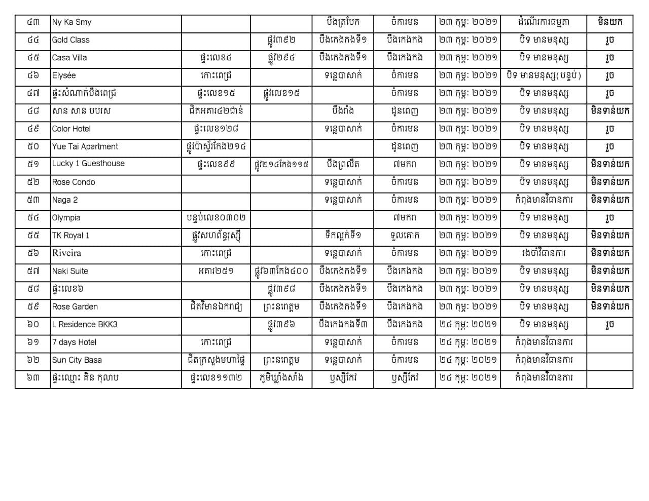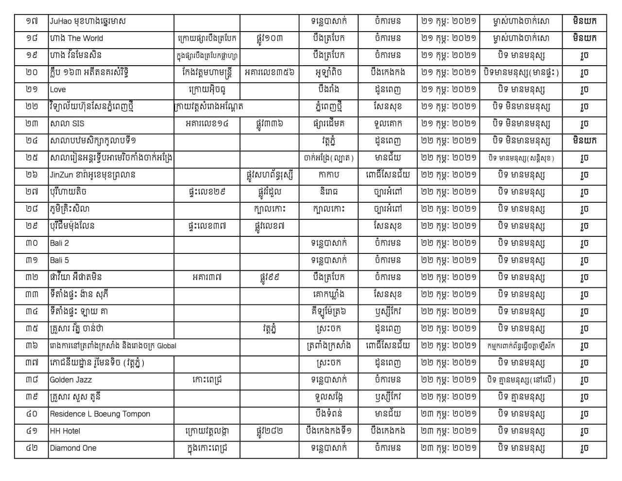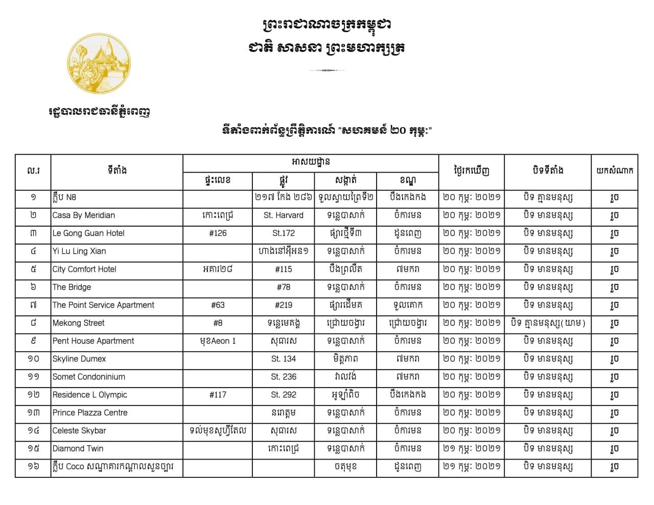បន្ទាន់! ទីតាំងពាក់ព័ន្ធព្រឹត្តិការណ៍ “សហគមន៍២០កុម្ភៈ” នៅរាជធានីភ្នំពេញ កើនដល់៦៣កន្លែង