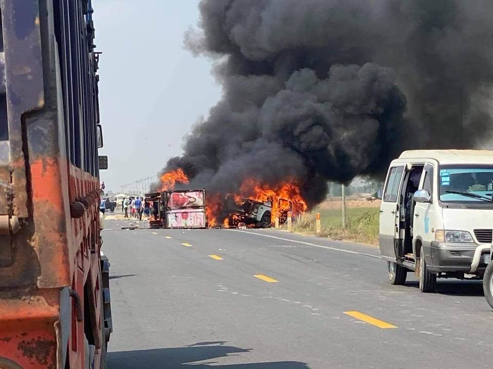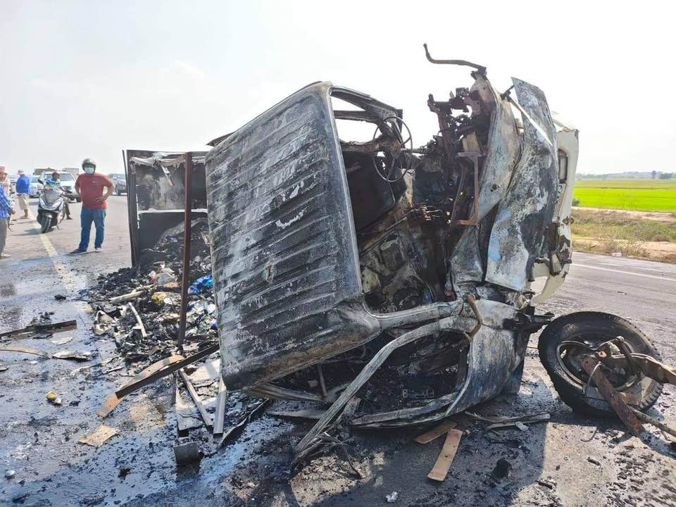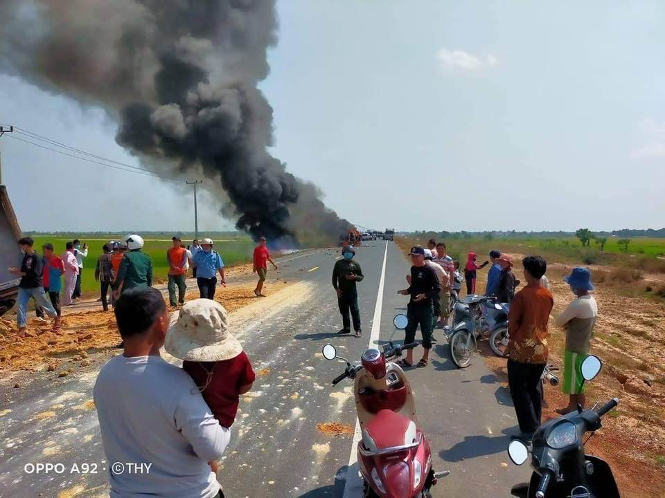 គ្រោះថ្នាក់រថយន្តបុកគ្នានៅខេត្តព្រៃវែង បណ្តាលឲ្យឆាបឆេះរថយន្ត២គ្រឿង និងមួយគ្រឿងទៀតក្រឡាប់ធ្លាក់ផ្លូវ