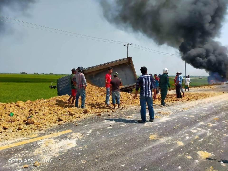 ខេត្តព្រៃវែង៖ (ព័ត៌មានបឋម) យោងតាមការបញ្ជាក់នៅលើគណនីហ្វេសប៊ុករបស់ឯកឧត្តម ខៀវ កាញារីទ្ធ រដ្ឋមន្ដ្រី​ក្រសួង​ព័ត៌មាន បានឲ្យដឹងថា នៅរសៀលថ្ងៃទី ២៥ ខែកុម្ភៈឆ្នាំ ២០២១នេះ នៅត្រង់ចំណុចផ្លូវក្រវ៉ាត់ក្រុងក្នុងសង្កាត់តាកោ ក្រុងព្រៃវែង ខេត្តព្រៃវែង មានករណីរថយន្តបុកគ្នាបានបណ្ដាលឲ្យឆេះរថយន្តចំនួនពីរគ្រឿង និងឡានដឹកដីមួយគ្រឿងក្រឡាប់ បណ្ដាលឲ្យមនុស្សរងរបួសម្នាក់សមត្ថកិច្ចកំពុងធ្វើការវាស់វែងរកខុសហើយនឹងត្រូវនៅកន្លែងកើតហេតុ៕