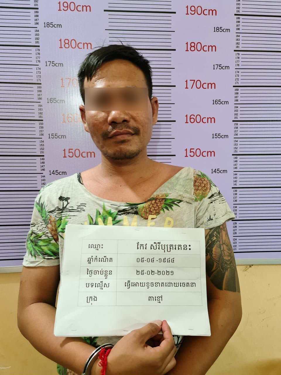 ខេត្តកណ្ដាល៖ បុរសម្នាក់ត្រូវបានសមត្ថកិច្ចខេត្តកណ្តាលធ្វើការឃាត់ខ្លួន ក្រោយប្រើដាវសាំម៉ូរ៉ៃកាប់បំផ្លាញទ្រព្យសម្បត្តិអ្នកដ៏ទៃ។ ហេតុការណ៍ដ៏សាហាវនេះបានកើតឡើងកាលពីវេលាម៉ោង៦ និង ២៥នាទីល្ងាចថ្ងៃទី២៥ ខែកុម្ភៈឆ្នាំ២០២១ ស្ថិតនៅចំណុចហាងកាហ្វេ ភូមិព្រែករាំង១ សង្កាត់ កំពង់សំណាញ់ ក្រុងតាខ្មៅខេត្តកណ្តាល។