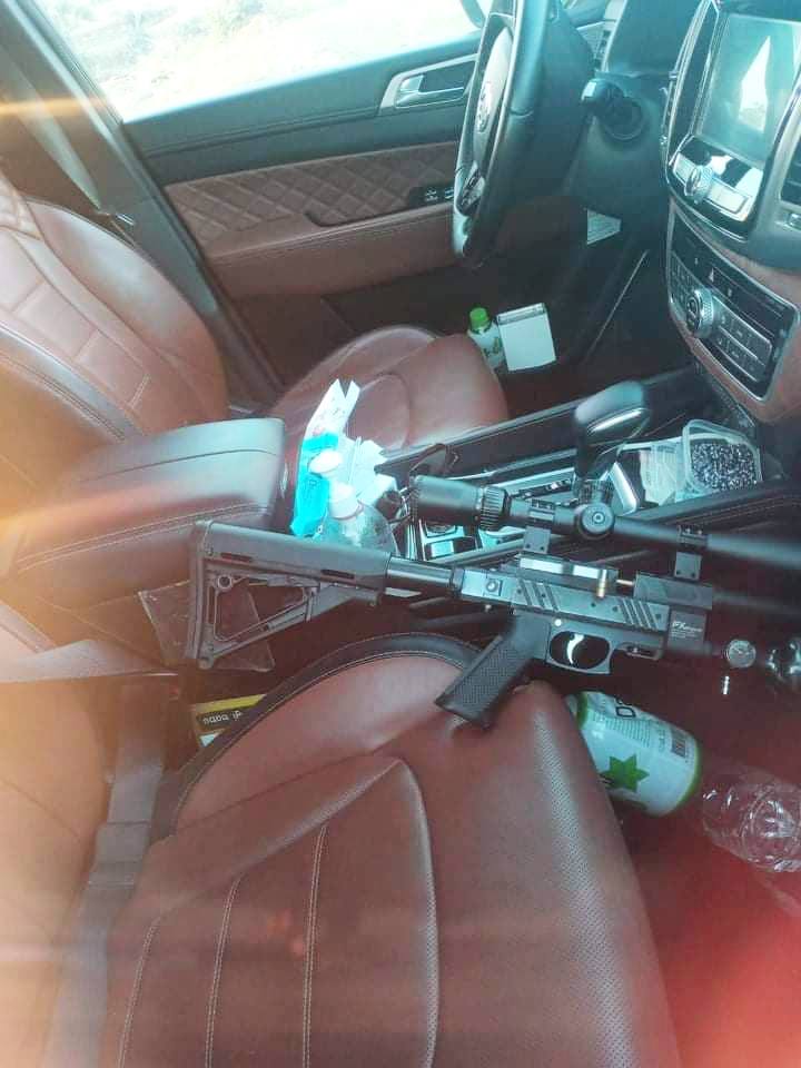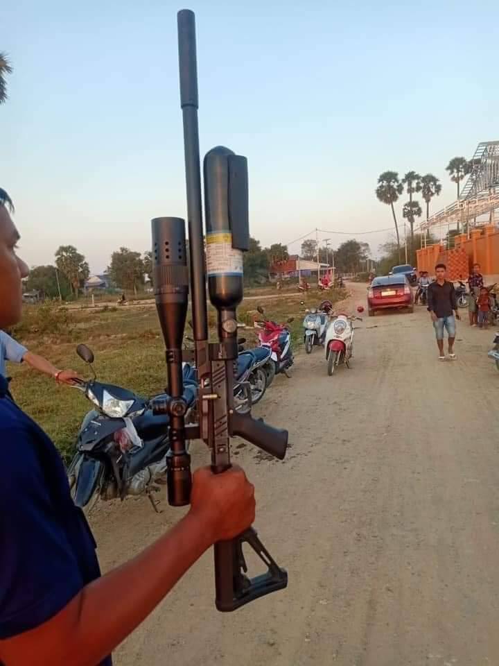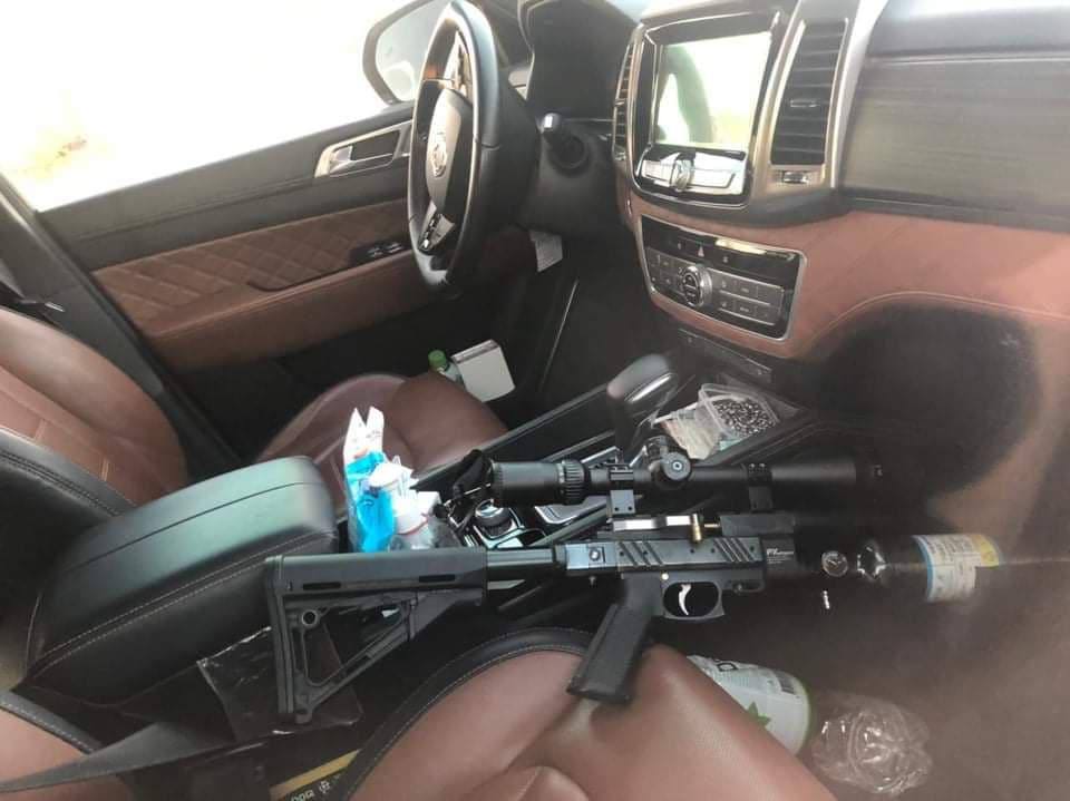 ក្រោយកើតហេតុ សមត្ថកិច្ចឃាត់ខ្លួនបុរស២នាក់ ជិះរថយន្តមួយគ្រឿង REXTON ពណ៌ស ពាក់ផ្លាកលេខ ខ.ម-0282 រកឃើញកាំភ្លើងបាញ់សត្វ(ខ្យល់)មួយដើម និងសត្វលលកងាប់មួយក្បាល។