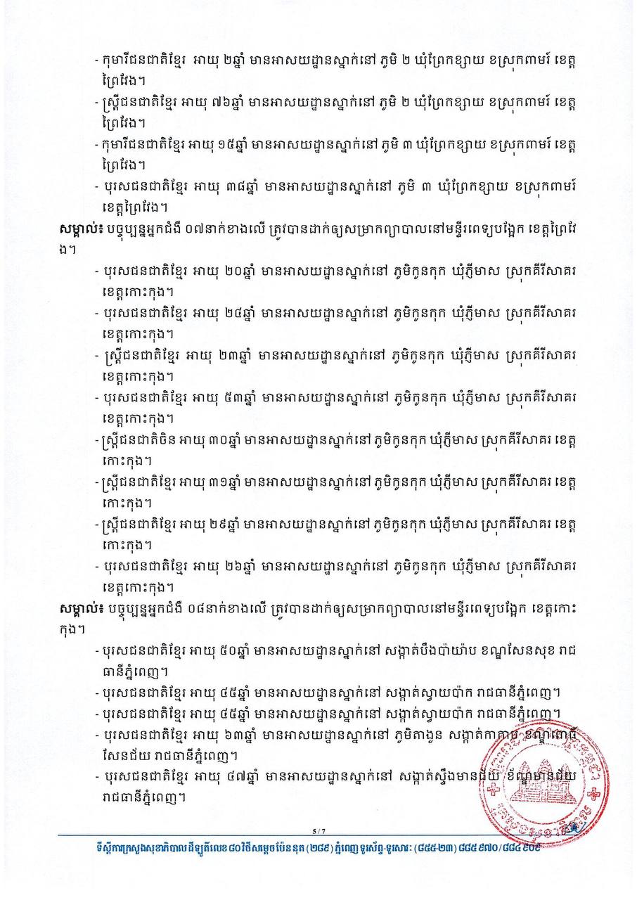 ប្រុងប្រយ័ត្នទាំងអស់គ្នា ! ព្រឹកនេះរកឃើញវិជ្ជមានថ្មី ៦២នាក់ និងជាសះស្បើយ ២២នាក់