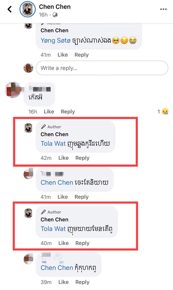 ម្ចាស់គណនីហ្វេសប៊ុកខាងលើជាស្រ្តីមានវ័យ១៨ឆ្នាំរស់នៅឃុំចែងមានជ័យស្រុកបាណន់ ខេត្តបាត់ដំបង ។ នៅចំពោះមុខមន្រ្តីសុខាភិបាល និងអាជ្ញារធរមូលដ្ឋានរូបគាត់បានឆ្លើយបញ្ជាក់ថា ពីថ្ងៃទី១៣ ខែ មីនា ឆ្នាំ២០២១ គាត់បានសរសេរនៅក្នុងគណនីហ្វេសប៊ុករបស់គាត់ថា (សព្វថ្ងៃខំធ្វើការទាំងឈឺ ទាំងជាដើម្បីលុយ) នៅពេលនោះមានអ្នកខូមិន Comment សួរគាត់ថា (កើតអី?) រូបគាត់ក៏ឆ្លើយតបក្នុងខ្លឹមសារខូមិន Comment ថា (ខ្ញុំមិនហ៊ានចូលផ្ទះរបស់ខ្ញុំទេ -មូលហេតុដោយសារខ្ញុំឆ្លងជម្ងឺកូវីដហើយ-ខ្ញុំនិយាយមែនពូ)។