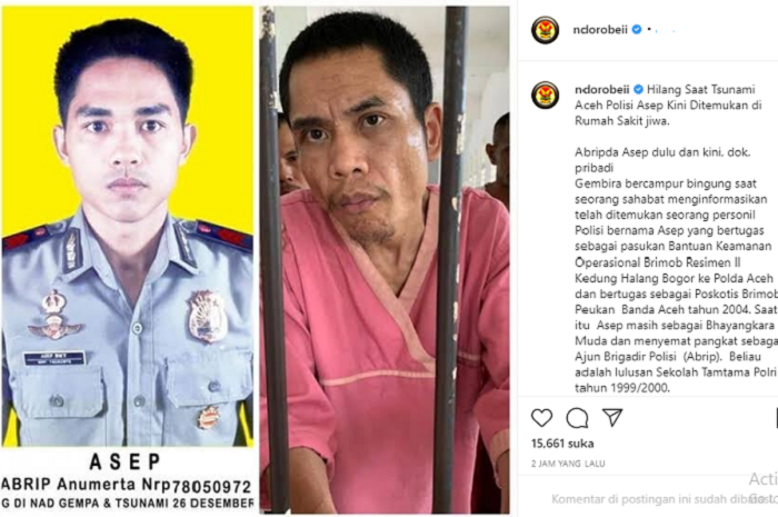 ប៉ូលិសឥណ្ឌូនេស៊ីម្នាក់ដែលគេធ្លាប់ប្រកាសថា បាត់បង់ជីវិត ដោយសាររលកយក្សស៊ូណាមិកាលពីឆ្នាំ ២០០៤ ស្រាប់តែពេលនេះគេប្រទះឃើញគាត់នៅរស់នៅឡើយ តែគាត់ស្ថានក្នុងសភាពបែបនេះ