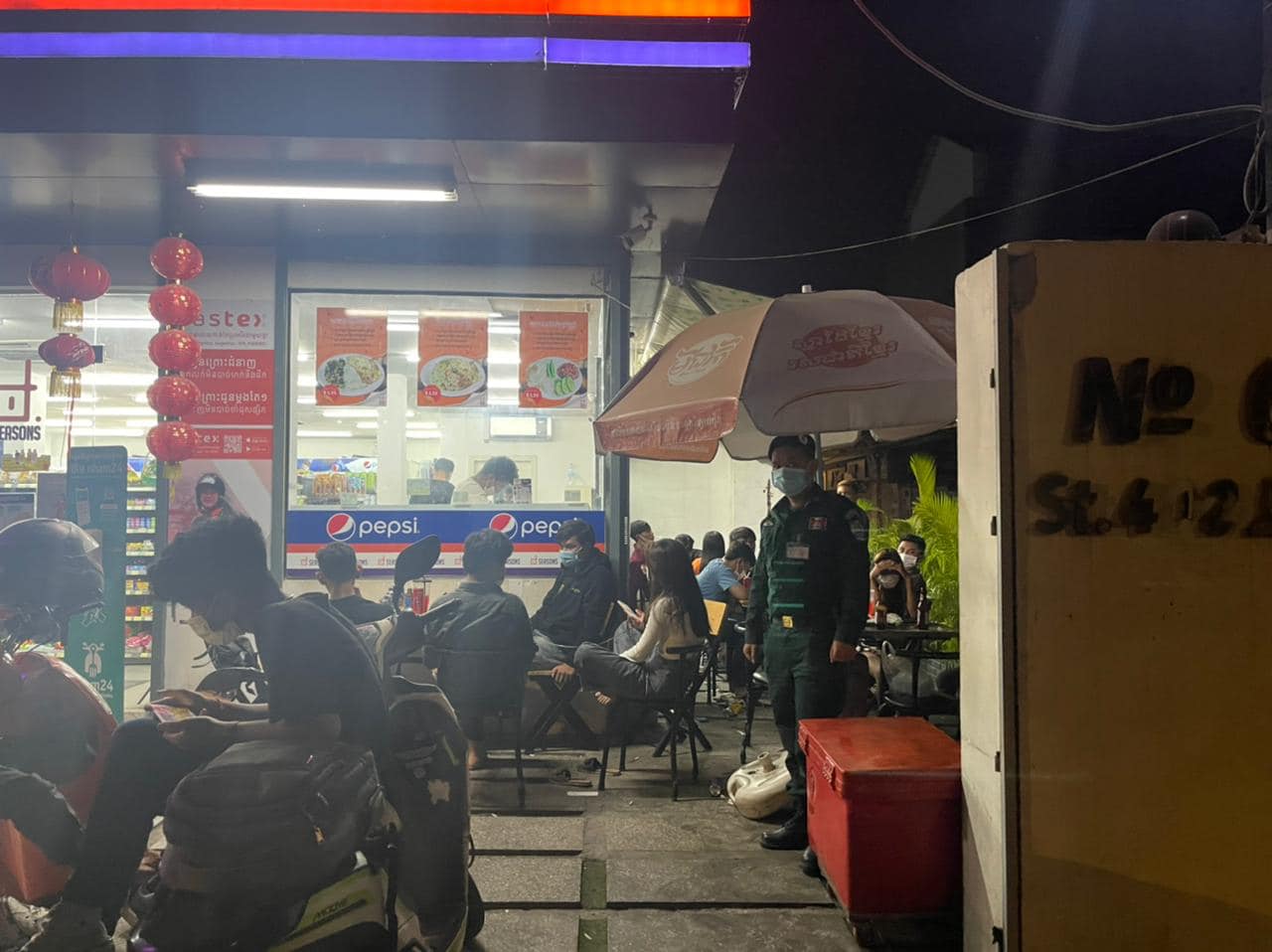 វេលាម៉ោងជិត ១២ យប់ នៅមានប្អូនៗច្រើននាក់មកជួបជុំនៅម៉ាត ជជែកគ្នាលេង ហាក់ដូចជាមិនខ្លាចជំងឺកូវីដសោះ។ យោងតាមផេកហ្វេសបុកផ្លូវការរបស់ស្នងការនគរបាលរាជធានីភ្នំពេញ បានឲ្យដឹងថា៖ វេលាម៉ោង ១១:៤៣យប់នាទីហេីយ បេីមិនចាំបាច់ប្អូនៗមិនគួរចេញក្រៅផ្ទះនោះទេ។ ដេីម្បីចូលរួមបង្ការ និងទប់ស្កាត់ការឆ្លងរាលដាលវីរុសកូវីដ ១៩ សមត្ថកិច្ចនៃអធិការដ្ឋាននគរបាលខណ្ឌបឹងកេងកង បានចេញល្បាតដេីម្បីត្រួតពិនិត្យ និងណែនាំដល់ប្រជាពលរដ្ឋដែលប្រមូលផ្តុំជួបជុំគ្នាច្រេីននៅតាមទីតាំងមួយចំនួន កុំឲ្យចេញពីផ្ទះបេីមិនចាំបាច់ ។