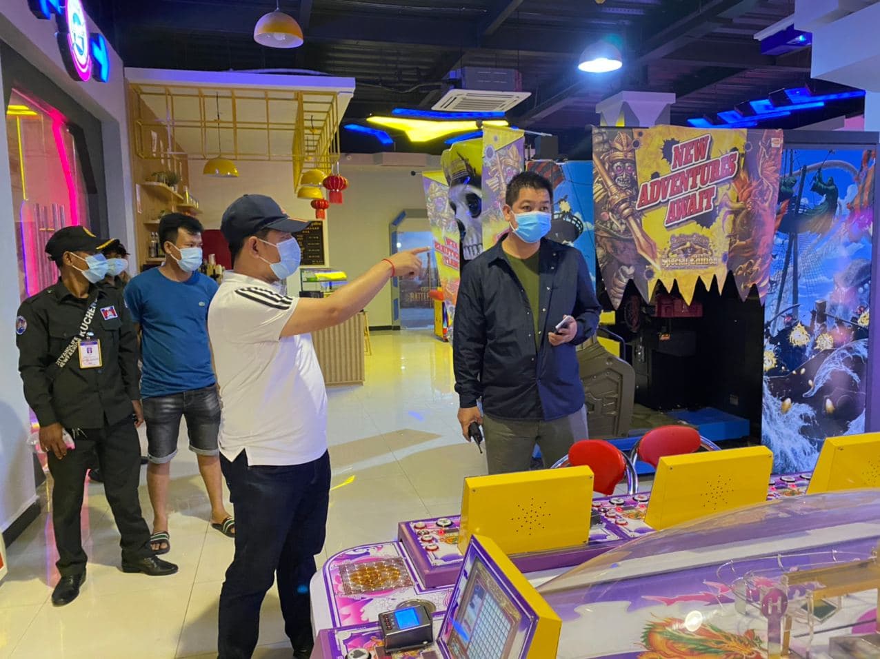ក្នុងការចុះបង្ក្រាបនេះ គេឃើញក្នុងទីតាំងសុទ្ធតែទូរហ្គេមរាប់សិបគ្រឿងមានហ្គេម បាញ់ត្រី , ទូរហ្គេម Slot Machines, ទូរហ្គេម កម្សាន្ត, និងហ្គេម តុក្កតា អេឡិចត្រូនិកជាច្រើនគ្រឿងទៀត តែអ្នកយកព័ត៌មានយើង មិនឃើញសមត្ថកិច្ចចាប់ដកហូត សម្ភារអ្វីឡើយ តែសមត្ថកិច្ចឃាត់ខ្លួន មនុស្សប្រុសស្រីចំនួន២០នាក់ ក្នុងនោះមានជនជាតិចិន ៨នាក់ និងជនជាតិខ្មែរ ១២នាក់, ប្រុស១៦នាក់ មានភ្ញៀវចិន៧នាក់ និងខ្មែរ៩នាក់ ក្នុងនោះមានបុគ្គលិក៤នាក់ និងភ្ញៀវ ២នាក់, ស្រី៤នាក់ មានភ្ញៀវចិន ១នាក់ ភ្ញៀវខ្មែរ ១នាក់ និងបុគ្គលិក ២នាក់ ។ ហើយចំពោះទីតាំងខាងលើវិញ ត្រូវបានអាជ្ញាធរ បិទទ្វារចាក់សោរជាបណ្តោះអាសន្ន ។