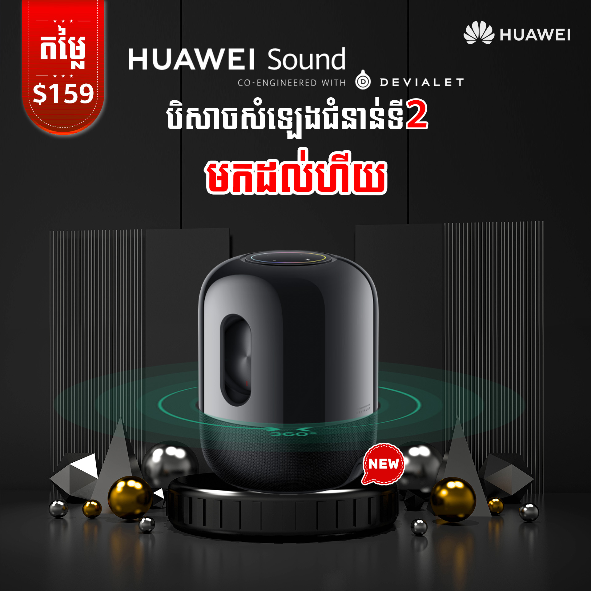 ភ្នំពេញ ថ្ងៃទី 24 មីនា 2021 ទីបំផុត ក្រុមហ៊ុនហួវៃដាក់លក់ Huawei Sound បាសឆ្លាតវៃ បិសាចសំឡេងជំនាន់ទី2 ជាផ្លូវការក្នុងប្រទេសយើងក្នុងតម្លៃត្រឹមតែ $159។ សម្រាប់អតិថិជនដែលចាប់អារម្មណ៍អាចស្វែងរកជាងនៅតាម Huawei Showroom ហាងដៃគូរសហការដែលនៅក្បែរលោកអ្នកជាងគេ។