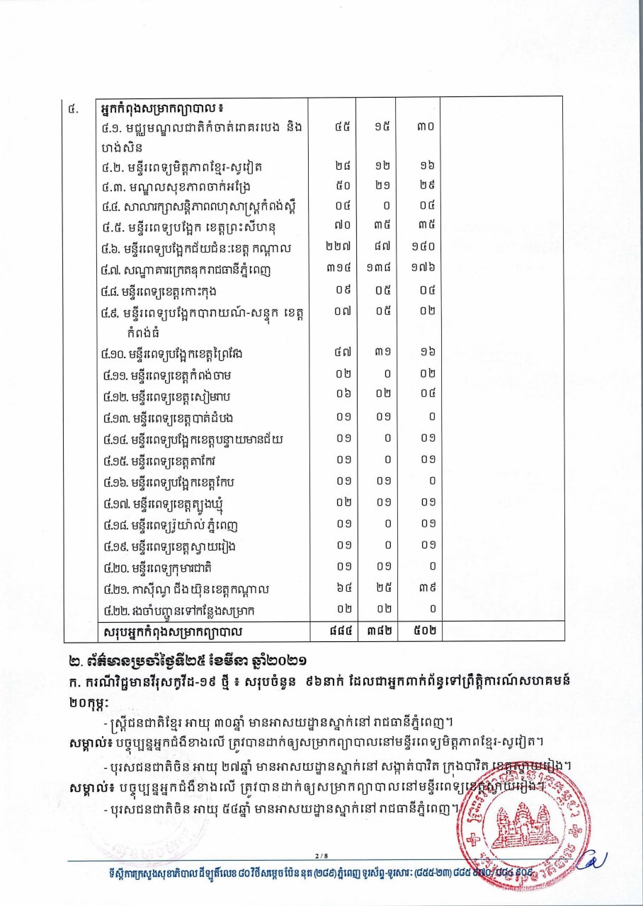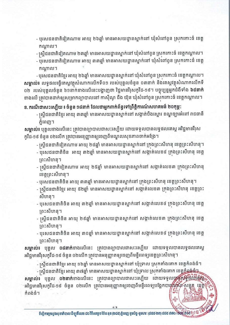 យោងតាមសេចក្តីប្រកាសរបស់ក្រសួងសុខាភិបាល បានបញ្ជាក់ថា អ្នកវិជ្ជមានទាំង ៩៦នាក់នោះ គឺ ជាអ្នកពាក់ព័ន្ធព្រឹត្តិការណ៍ សហគមន៍២០កុម្ភៈ ទាំងអស់។ សូមអានសេចក្តីជូនព័ត៌មាននៅខាងក្រោម៖