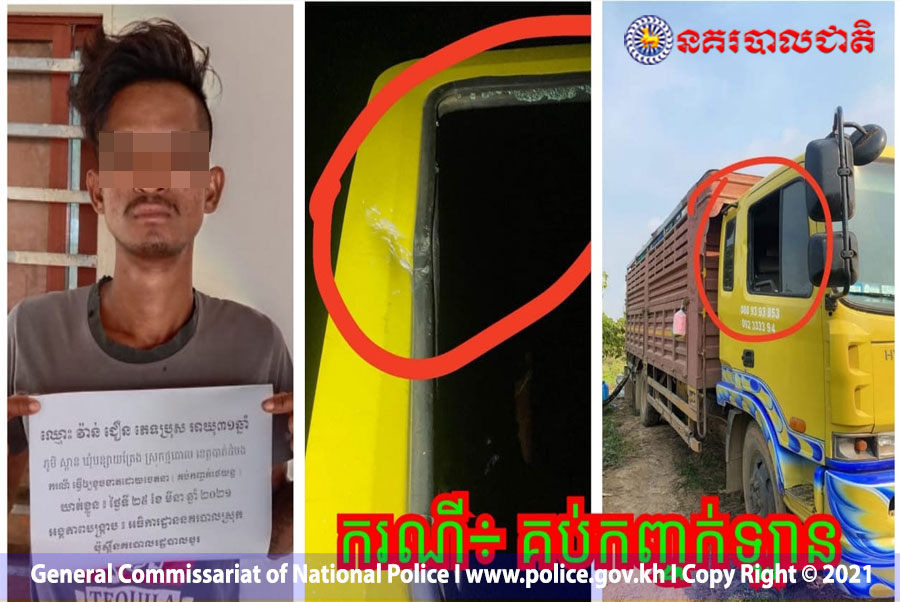 សូមជម្រាបជូនថា កាលពីថ្ងៃទី២៣ ខែមីនា ឆ្នាំ២០២១ វេលាម៉ោង១និង៣០នាទីរំលងអធ្រាត្រ នៅចំណុចភូមិ ដំណាក់ក្សាន្ត ឃុំបួរ ស្រុកភ្នំព្រឹក ខេត្តបាត់ដំបង ជនសង្ស័យមិនស្គាល់អត្តសញ្ញាណបានប្រើប្រាស់ដុំថ្មគប់កញ្ចក់រថយន្តម៉ាក ហ៊ីយ៉ាន់ដាយ ពណ៌លឿង ពាក់ស្លាកលេខ ភ្នំពេញ 3C-2723 បែកកញ្ចក់ទ្វាររថយន្តផ្នែកខាងស្ដាំក្នុងខណៈរថយន្តនេះកំពុងបើកបរលើដងផ្លូវ ប៉ុន្តែមិនបណ្តាលឱ្យមានរបួសស្នាមដល់មនុស្សឡើយ។ នៅក្រោយពេលកើតហេតុ ជនរងគ្រោះជាម្ចាស់រថយន្តឈ្មោះ ស៊ា សេង ភេទប្រុស អាយុ ៤២ឆ្នាំ មានទីលំនៅភូមិគីឡូ១៣ ឃុំសន្តិភាព ស្រុកសំពៅលូន ខេត្តបាត់ដំបង បានដាក់ពាក្យបណ្តឹងចូលទៅសមត្ថកិច្ចនគរបាលមូលដ្ឋានពីករណីនេះហើយឆ្លងតាមរយៈការស្រាវជ្រាវសមត្ថកិច្ចកំណត់បានពីមុខសញ្ញានេះ រហូតឈានទៅធ្វើការឃាត់ខ្លួនបានតែម្តង។ នៅចំពោះមុខសមត្ថកិច្ចជនសង្ស័យបានឆ្លើយសារភាពថា រូបគេតែម្នាក់ឯង ហើយតែម្តងគត់ដែលបានយកដុំថ្មគប់ទៅលើរថយន្តនៅទីកន្លែងកើតហេតុនោះប្រាកដមែន ហើយចំពោះមូលហេតុដែលខ្លួនគប់នេះ គឺដោយសាររថយន្តនោះបើកភ្លើងភ្លឺធ្វើឱ្យចាំងភ្នែក។ ទោះជាយ៉ាងណានេះគឺជាការលើឡើងរបស់ជនសង្ស័យតែប៉ុណ្ណោះ ក៏ប៉ុន្តែសមត្ថកិច្ចរួមទាំងអ្នកធ្វើដំណើរនៅពេលយប់ឆ្លងកាត់មូលដ្ឋាននេះបានបង្ហាញថា មានករណីគប់កញ្ចក់រថយន្តផ្សេងទៀតនៅទីនោះនាពេលកន្លងមក។
