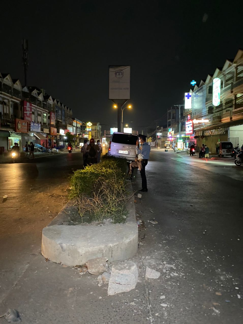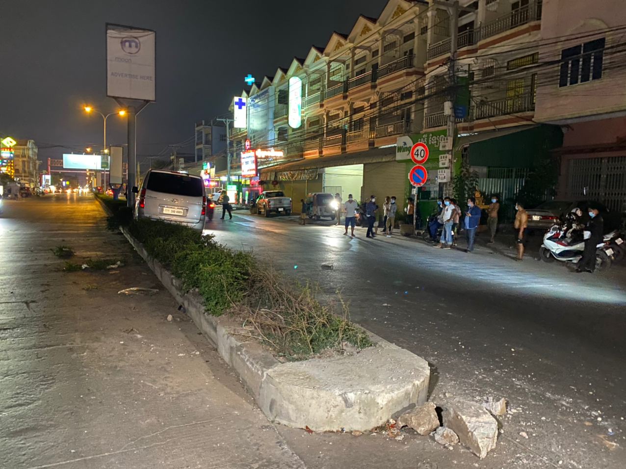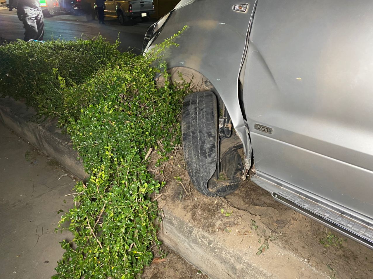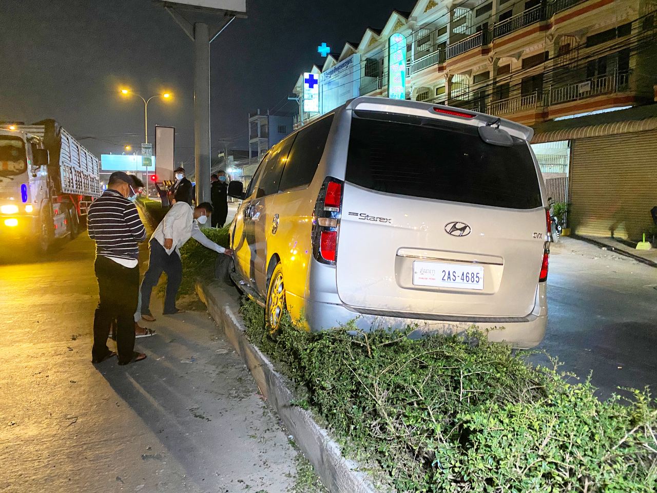 សូមបញ្ជាក់ថា នៅចំណុចកើតហេតុ ផ្លូវងងឹតមិនមានភ្លើងបំភ្លឺផ្លូវឡើយ ហើយខឿនសួនច្បារពុះចែកផ្លូវនោះ ក៏មិនមានដាក់ចំណាំងផ្លាតអ្វីដែរ គាប់ជួនរថយន្តបើកបរក្នុងល្បឿនលឿន ខ្វះការប្រុងប្រយ័ត្ន មើលមិនឃើញសួនច្បារពុះចែកផ្លូវ ទើបជ្រុលទៅបុកឡើងកល់ជាប់លើសួនច្បារពុះចែកផ្លូវនោះតែម្ដង ។