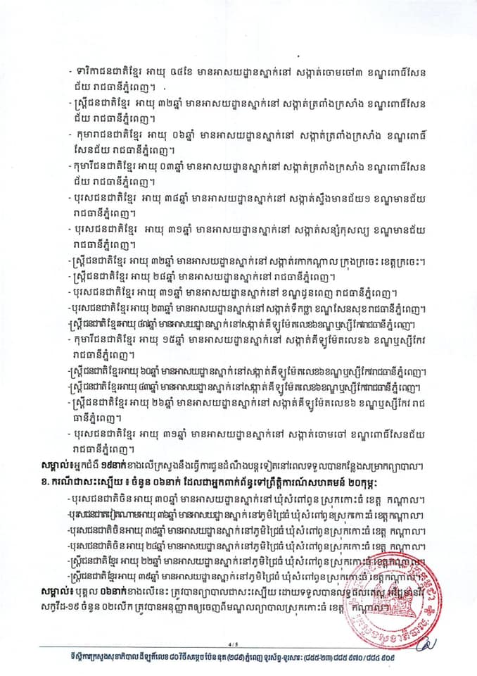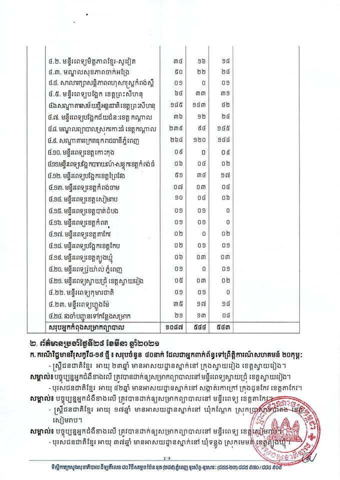 ក្រសួងប្រកាសរកឃើញវិជ្ជមានថ្មី ៤០នាក់ បន្ថែមទៀត សុទ្ធតែអ្នកឆ្លងក្នុងព្រឹត្តិការណ៍សហគមន៍២០កុម្ភៈ
