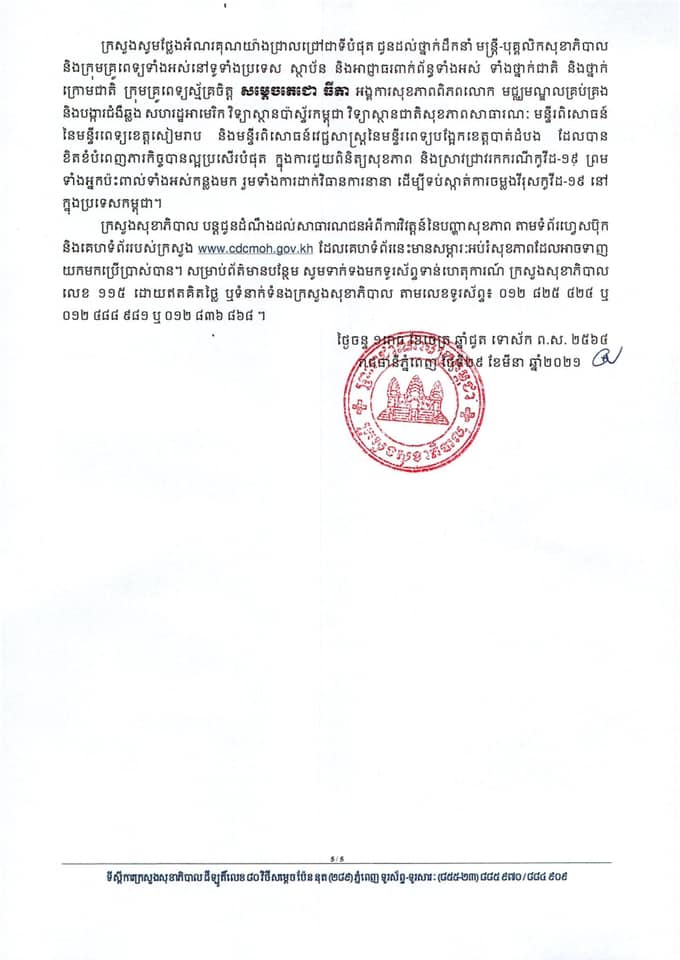 យោងតាមសេចក្តីប្រកាសរបស់ក្រសួងសុខាភិបាល បានបញ្ជាក់ថា អ្នកវិជ្ជមានទាំង ៤០នាក់នោះ គឺ ជាអ្នកពាក់ព័ន្ធព្រឹត្តិការណ៍ សហគមន៍២០កុម្ភៈ ទាំងអស់។ សូមអានសេចក្តីជូនព័ត៌មាននៅខាងក្រោម៖