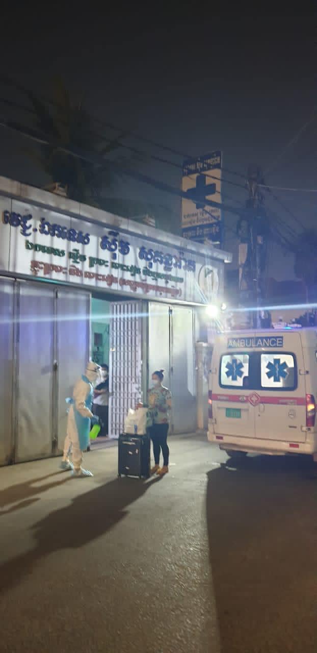 អ្នកវិជ្ជមានកូវិដ១៩ ចំនួន១២នាក់ នៅក្នុងមូលដ្ឋានខណ្ឌមានជ័យ ត្រូវបានក្រុមគ្រូពេទ្យមកយកទៅសម្រាកព្យាបាលនៅមន្ទីរពេទ្យហ្លួងម៉ែ ក្នុងនោះក៏មានទារកអាយុ០៩ខែម្នាក់ ដែលអវិជ្ជមានត្រូវរួមដំណើរជាមួយម្តាយ ទាំងក្តុកក្តួល ខណៈដែលមួយគ្រួសារទទួលបានលទ្ធផលពិនិត្យសំណាកលើកទី១ វិជ្ជមាន១០នាក់ នៅចំណុចផ្លូវលេខ៣២BT ផ្ទះលេខ១៤២ ក្រុម៥ ភូមិក្បាលទំនប់៣ សង្កាត់បឹងទំពន់២ ខណ្ឌមានជ័យ ។