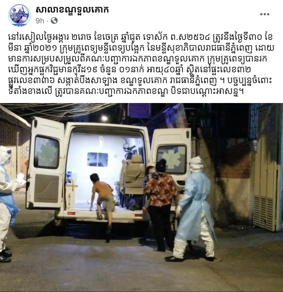សាលាខណ្ឌទួលគោក បញ្ជាក់ថា ក្រុមគ្រូពេទ្យរកឃើញអ្នកផ្ទុកវិជ្ជមានកូវីដ១៩ម្នាក់ វ័យ៤០ឆ្នាំ នៅខណ្ឌទួលគោក