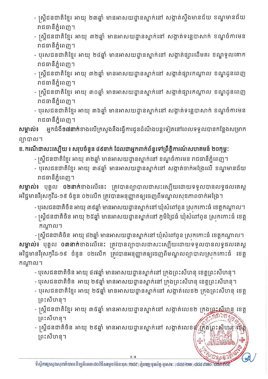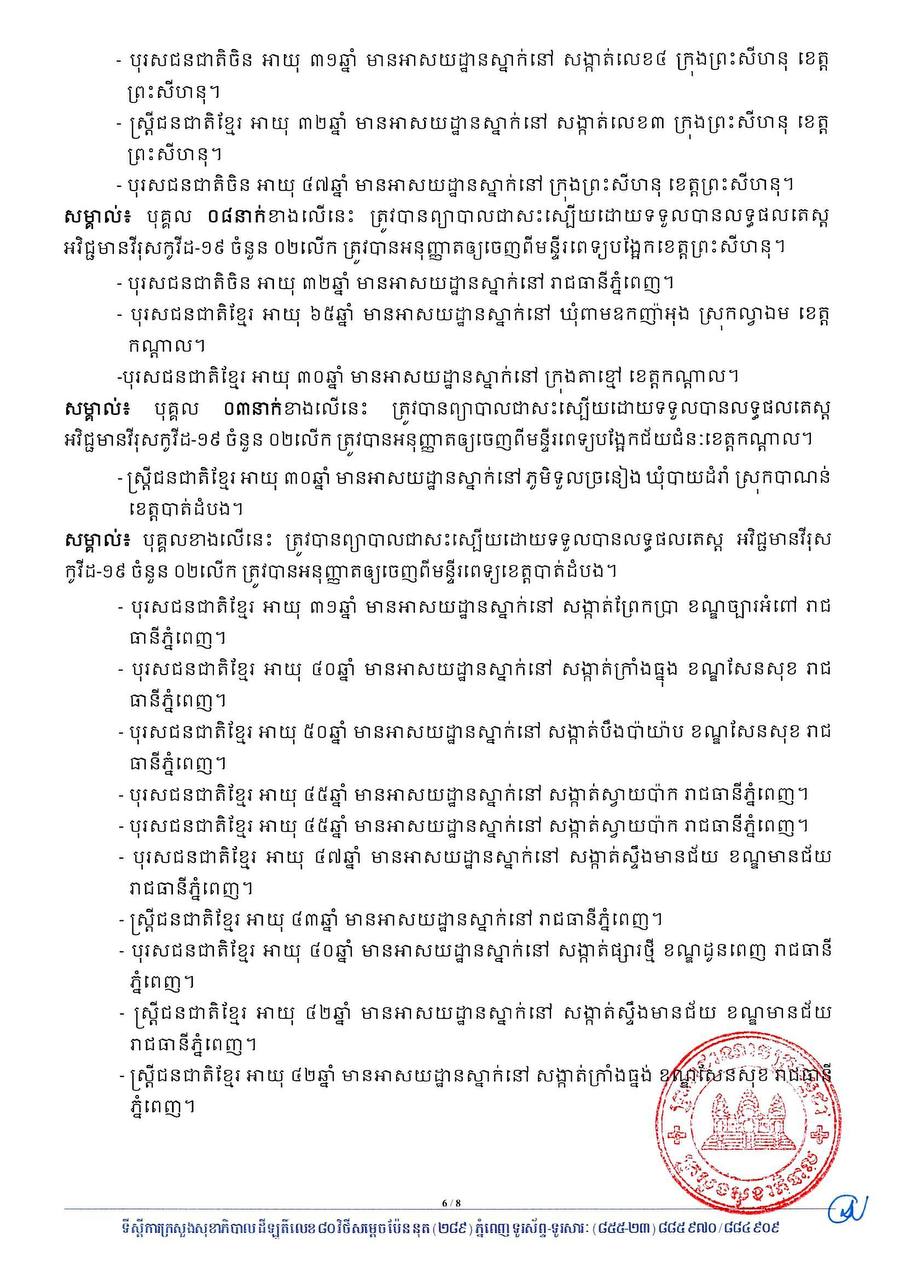 នៅក្នុងចំណោមអ្នកវិជ្ជមានទាំង៣៧នាក់នេះ ក៏មានកុមារ០៤នាក់ផងដែរ រួមមាន៖