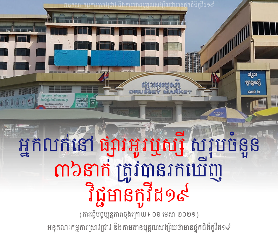 គិតមកទល់ពេលនេះ អាជីវករលក់ដូរនៅផ្សារអូរឬស្សីសរុប ៣៦នាក់ហើយបានឆ្លងជំងឺកូវីដ១៩
