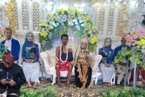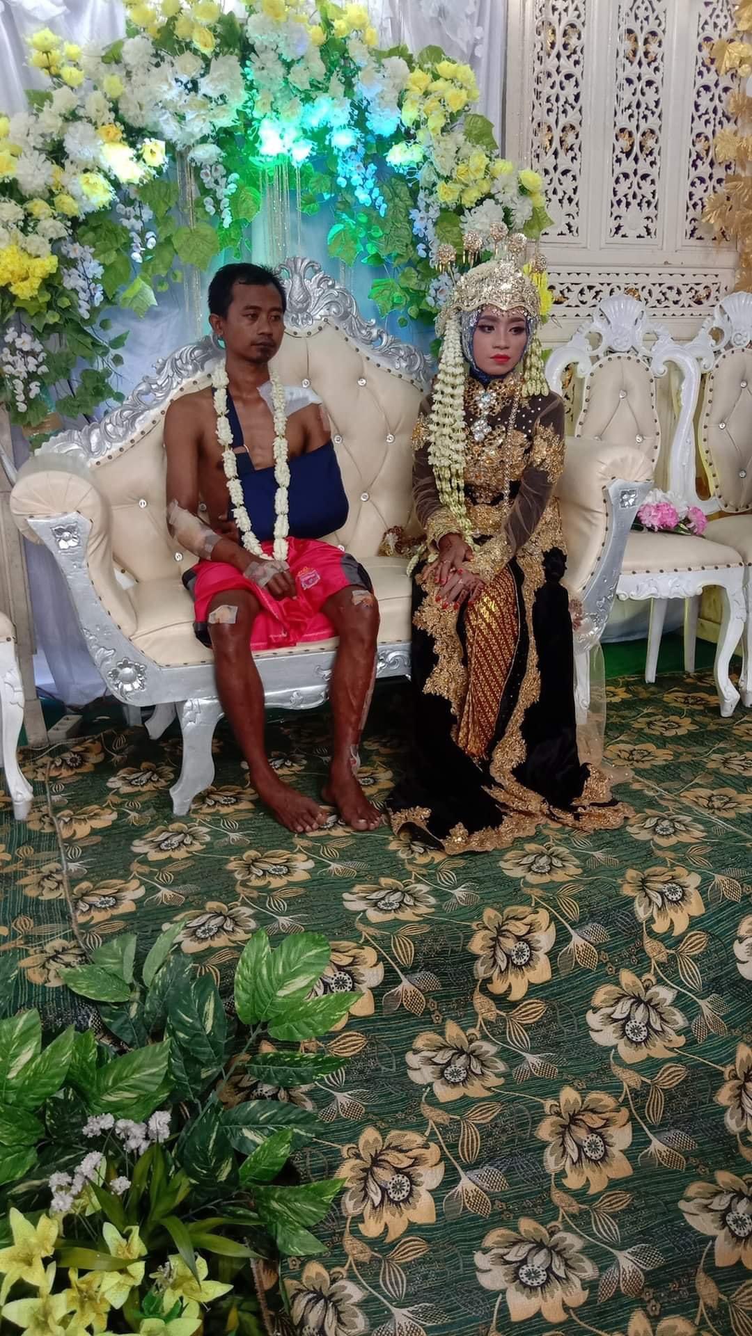 ឥណ្ឌូនេស៊ី៖ ខណៈដែលកូនក្រមុំនិងកូនកំលោះទាំងអស់បានស្លៀកពាក់ឈុតរៀបការស្អាតៗនៅក្នុងថ្ងៃរៀបការរបស់ពួកគេនោះ ស្រាប់តែមានកូនកំលោះម្នាក់ត្រូវបានគេប្រទះឃើញបង្ហាញវត្តមាននៅក្នុងថ្ងៃរៀបការដោយមិនបានពាក់អាវ ពាក់ស្បែកជើង ស្លៀកត្រឹមខោខ្លីមួយ និងមានរុំរបួសជាច្រើនកន្លែងនៅលើរាងកាយរបស់គាត់គួរឲ្យអាណិតបំផុត។ បើយោងតាមការចុះផ្សាយនៅក្នុងសារព័ត៌មាន World of buzz បានឲ្យដឹងថា ហេតុការណ៍នេះបានកើតឡើងនៅក្នុងតំបន់ចាវ៉ាខាងកើត នៃប្រទេសឥណ្ឌានេស៊ី ខណៈបុរសជាកូនកំលោះត្រូវបានគេស្គាល់ថាមានឈ្មោះ Suprapto និងកូនក្រមុំមានឈ្មោះថា Elinda Dwi Kristiani។