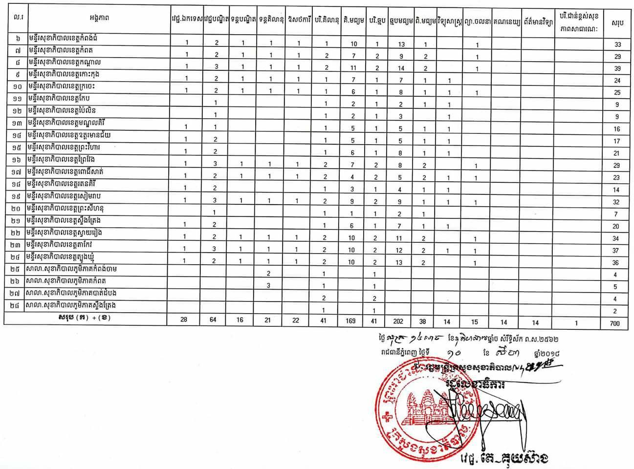 កាលពីពេលថ្មីៗនេះ ក្រសួងសុខាភិបាល បានធ្វើការប្រកាសជ្រើសរើសមន្ត្រីរាជការក្របខណ្ឌក្រសួងចំនួន៧០០នាក់ ដើម្បីឲ្យទៅបម្រើការងារនៅតាមអង្គភាពនានា តាមរយៈការប្រឡងប្រជែងទៅតាមទីកន្លែងធ្វើការ និងមុខជំនាញ ដែលត្រូវជ្រើសរើស។