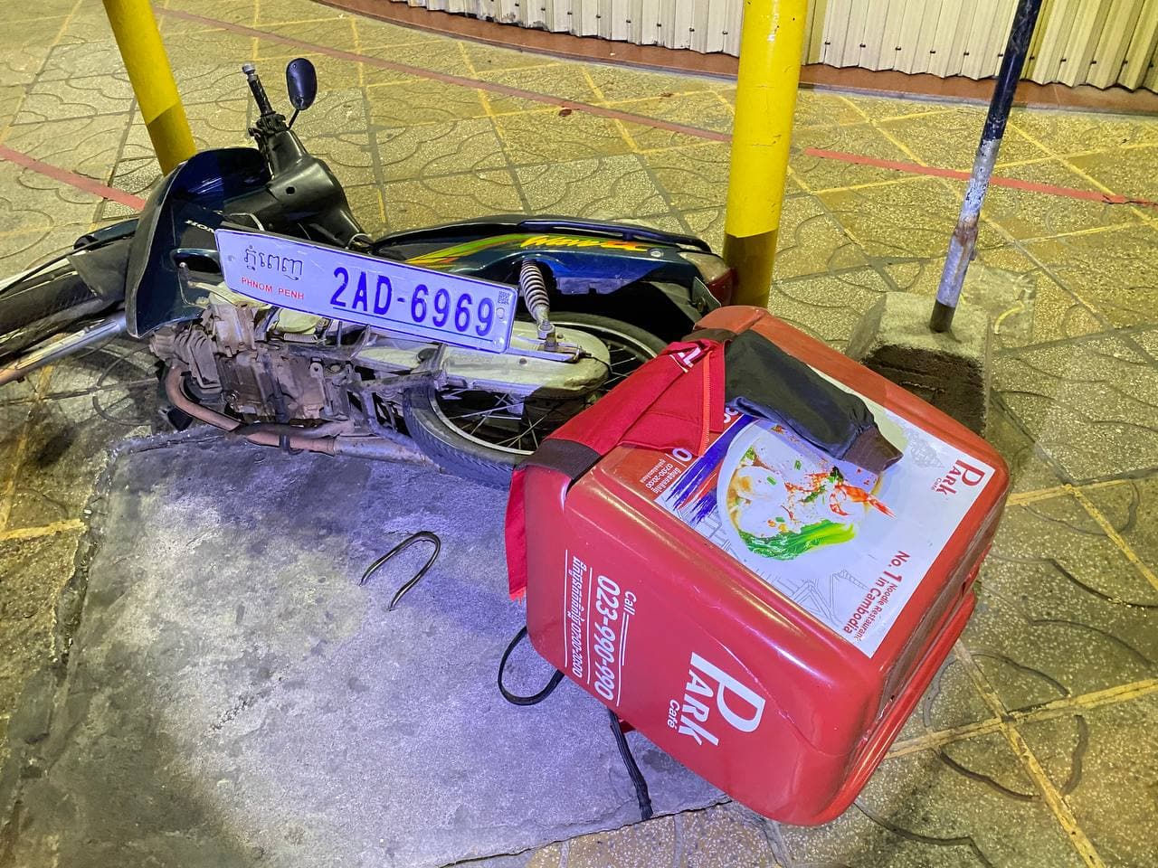 រថយន្តម៉ាក Range Rover ស៊េរីទំនើប ពណ៌ស ពាក់ស្លាកលេខភ្នំពេញ 2AD-6969 អ្នកបើបររត់បាត់ រីឯម៉ូតូម៉ាកហុងដាវ៉ែវ (Honda Wave) ពណ៌ទឹកប៉ិច ពាក់ស្លាកលេខភ្នំពេញ 1L-3995 បើកដោយបុរសម្នាក់រួមដំណើរនឹងបុរសម្នាក់ទៀត ដឹកម្ហូបតាមអនឡាញរបស់ក្រុមហ៊ុន Park Cafe ។