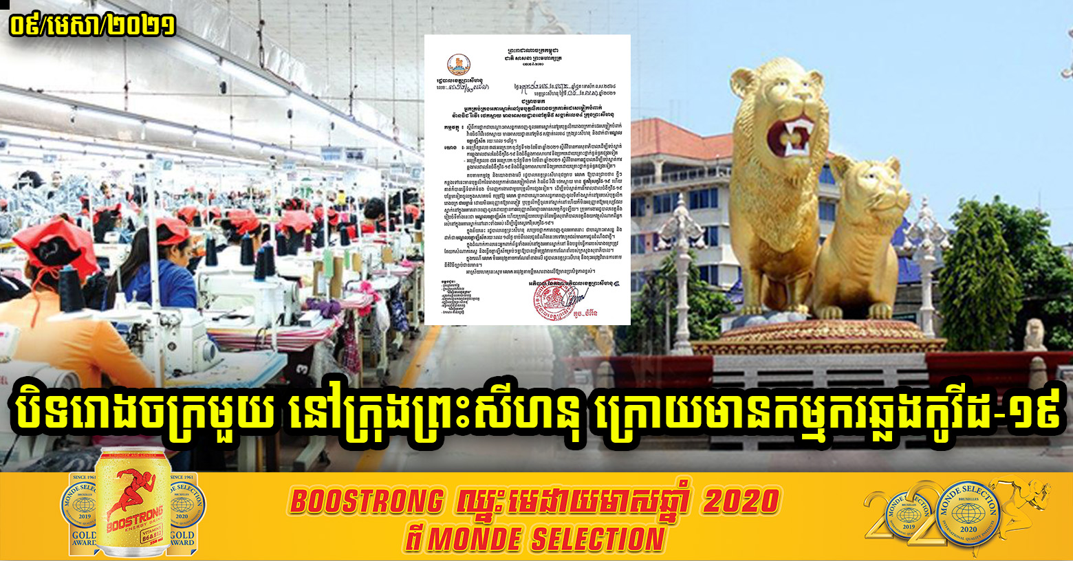 កម្មកររោងចក្រកាត់ដេរសម្លៀកបំពាក់នៅក្រុងព្រះសីហនុ ឆ្លងជំងឺកូវីដ-១៩ ពេលនេះអាជ្ញាធរអោយបិទរោងចក្រជាបន្ទាន់លែងអោយចេញ-ចូល