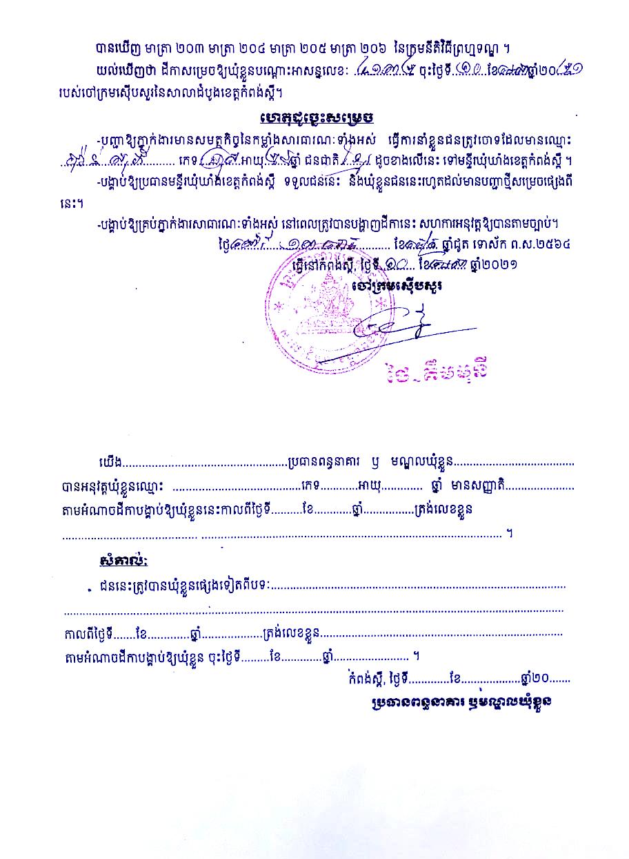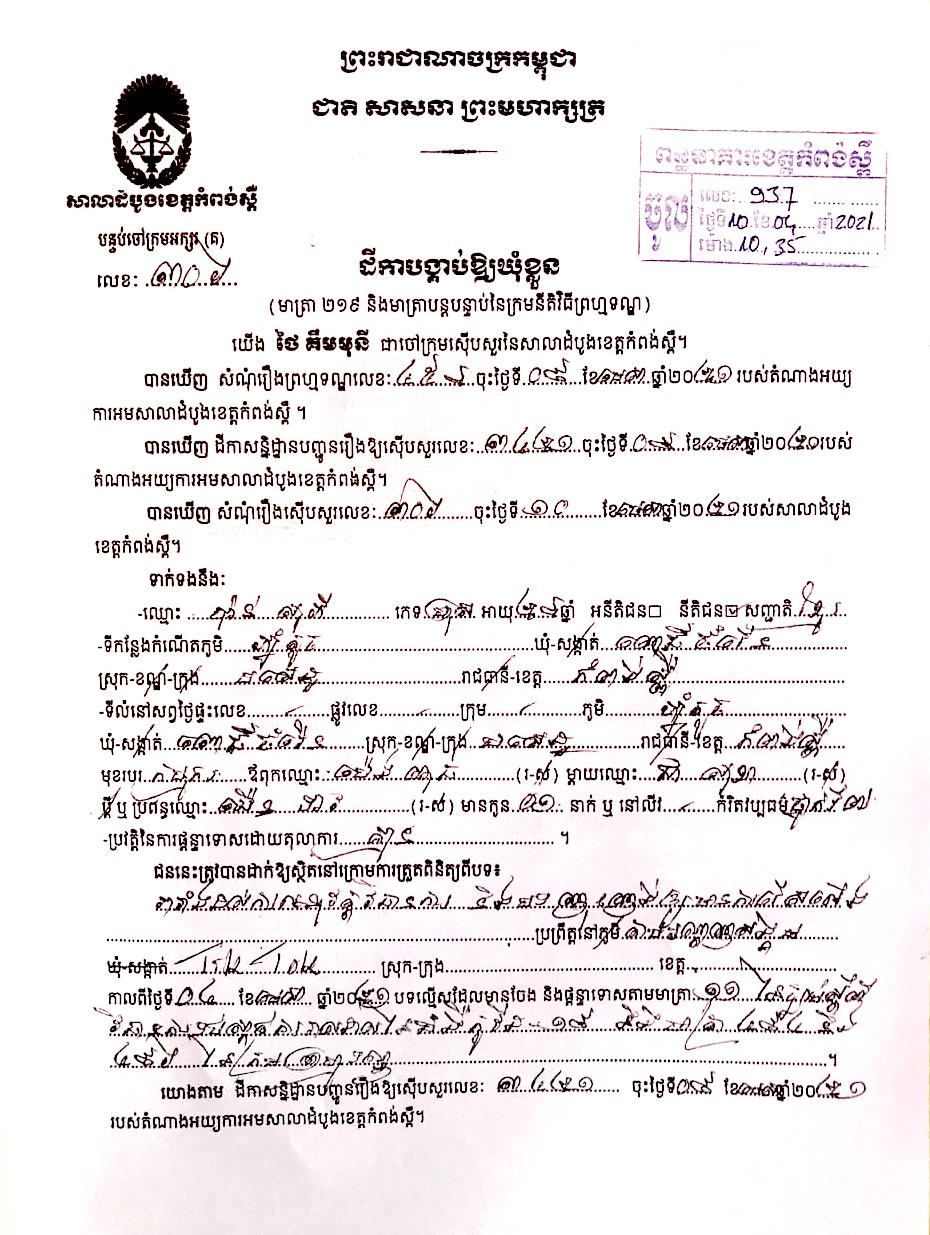 ជាក់ស្ដែងបុគ្គលដែលបានប្រេីប្រាស់បណ្ដាញសង្គម ដេីម្បីធ្វើសកម្មភាពបង្ហោះព័ត៌មាន ចោទប្រកាន់ដល់ការខិតខំប្រឹងប្រែងរបស់រាជរដ្ឋាភិបាលកម្ពុជា ផ្ទុយពីការពិត បានសារភាពទទួលស្គាល់ថាខ្លួនពិតជាបានធ្វេីសកម្មភាពដូចអ្វីដែលបានបង្ហោះក្នុងបណ្ដាញសង្គម tik tok និងប្រព័ន្ធបណ្តាញសង្គម facebook ពិតប្រាកដមែន។