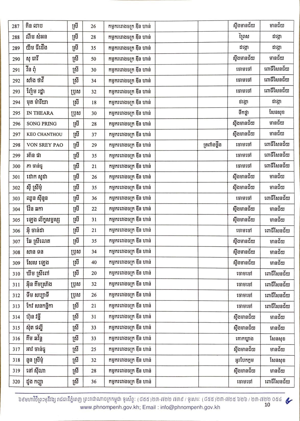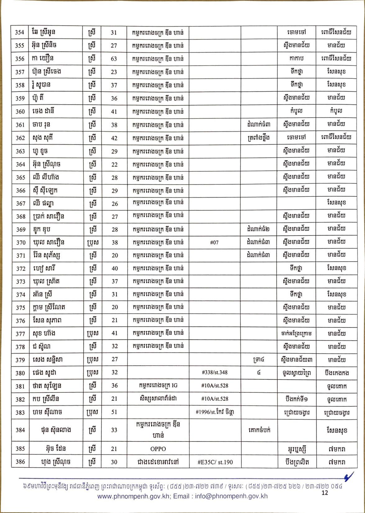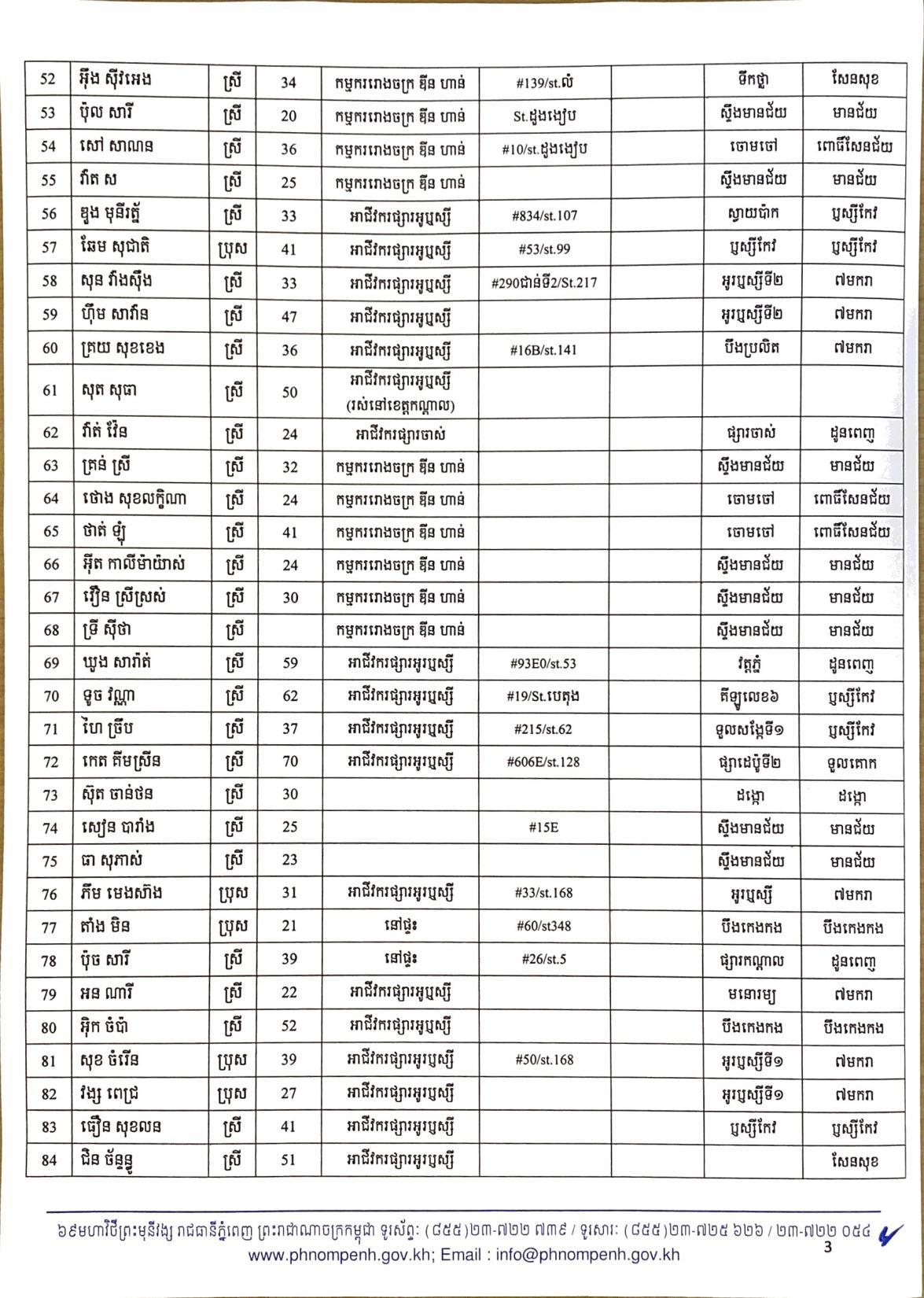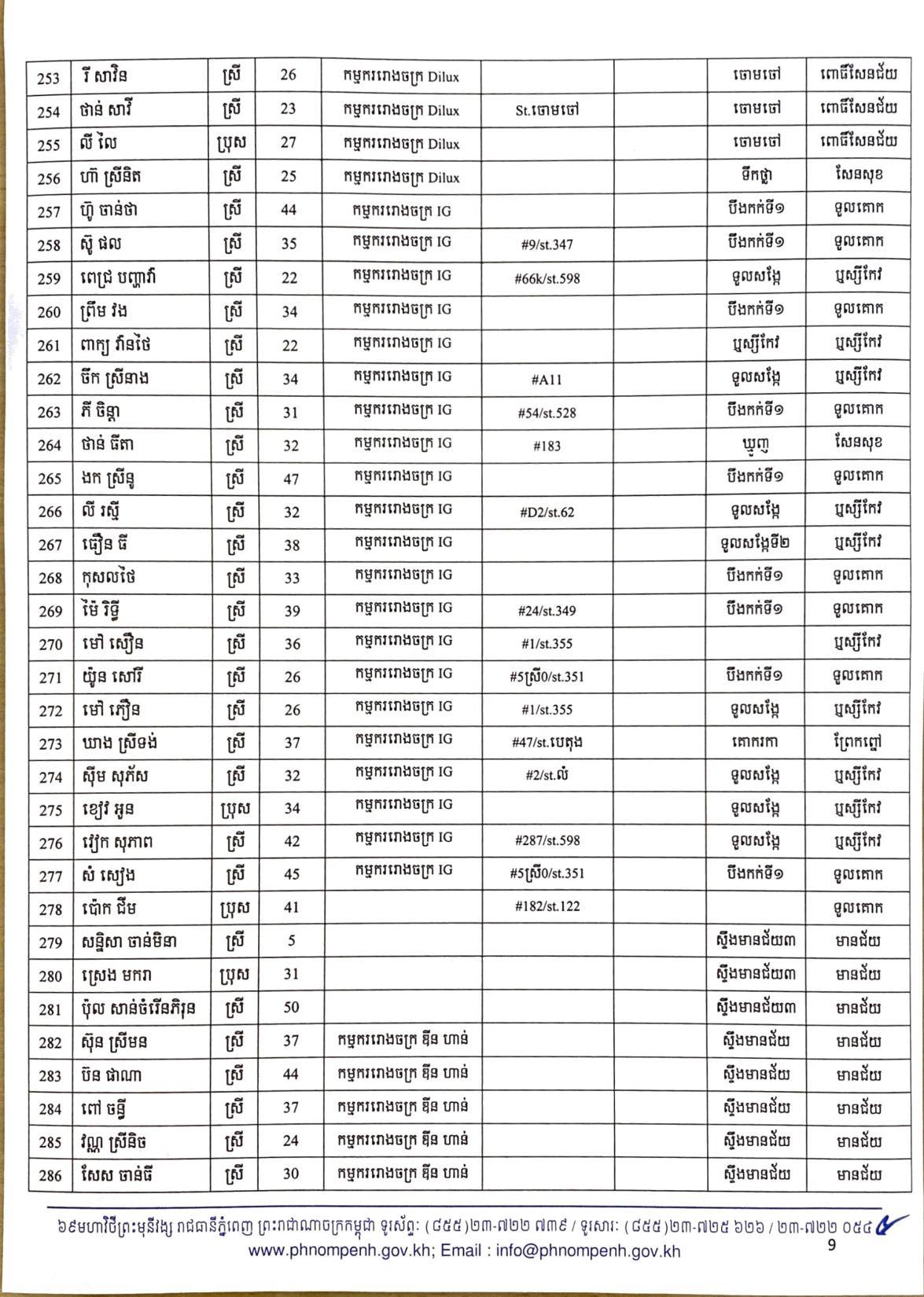 យោងតាមលិខិតរបស់ រដ្ឋបាលរាជធានីភ្នំពេញ បានធ្វើការបង្ហាញអត្តសញ្ញាណអ្នកវិជ្ជមានកូវីដ១៩ ទាំង៤០២នាក់នៅក្នុងរាជធានីភ្នំពេញ ក្នុងនោះមានអាជីវករ ដែលលក់ដូរនៅក្នុងផ្សារអូរឬស្សីជាច្រើនកន្លែងចំនួន៦៧នាក់ផងដែរ៕