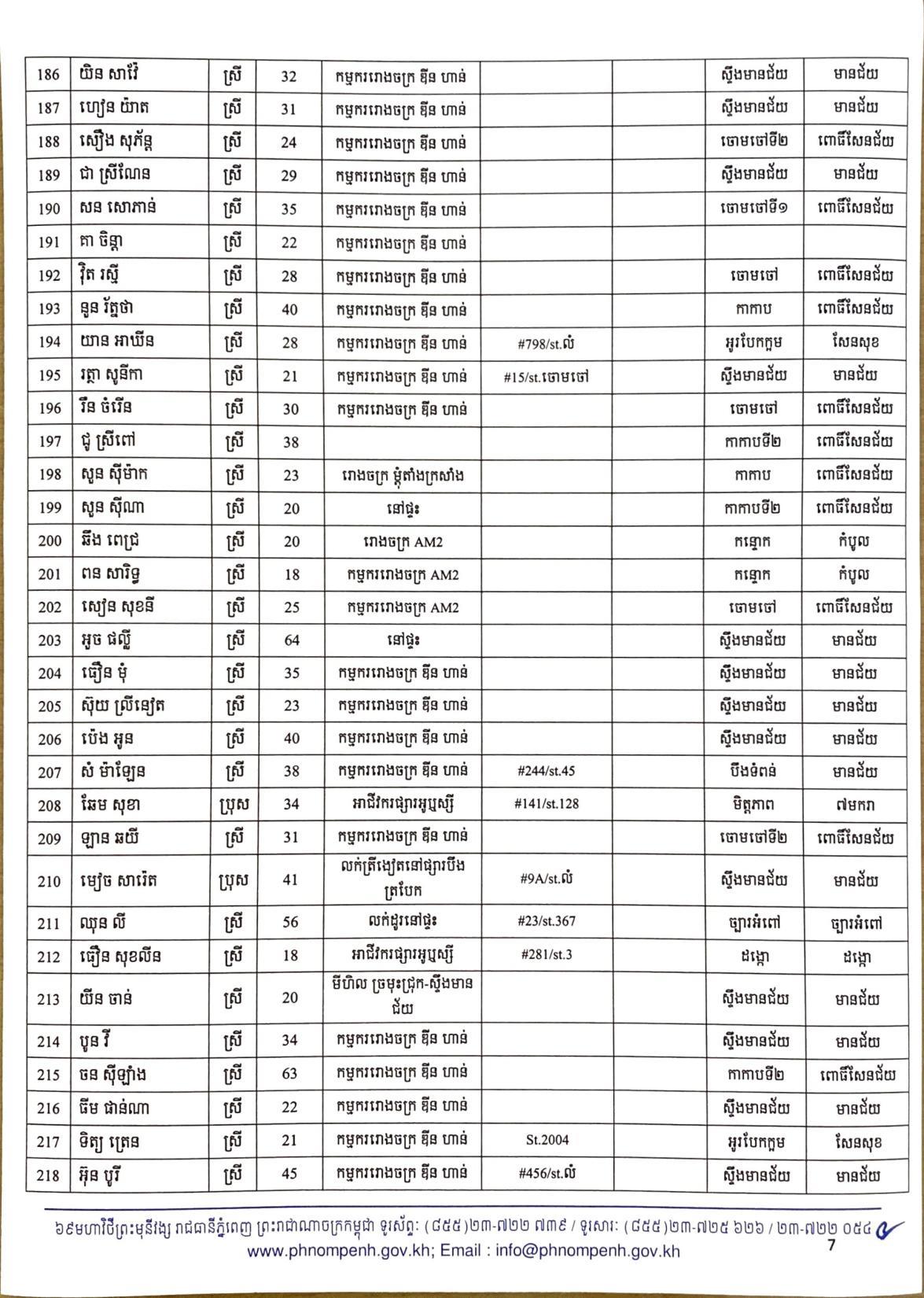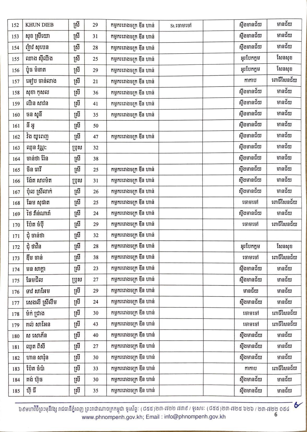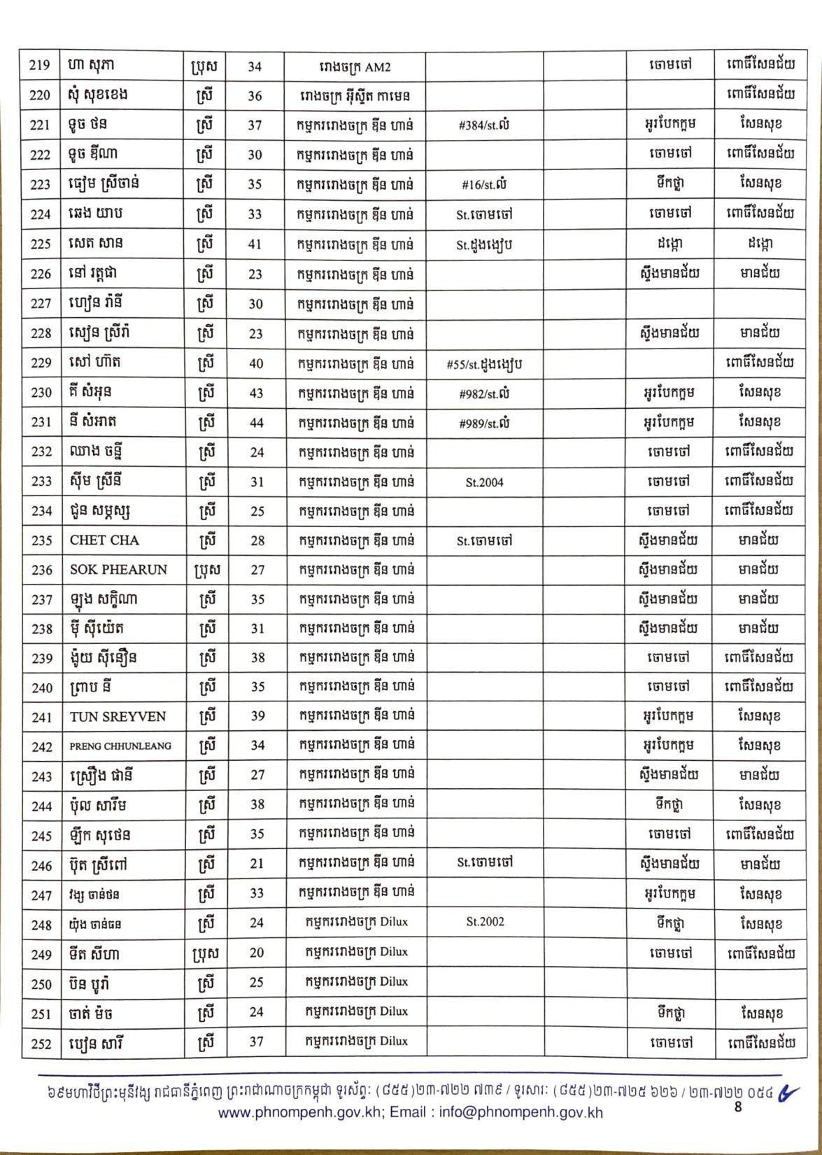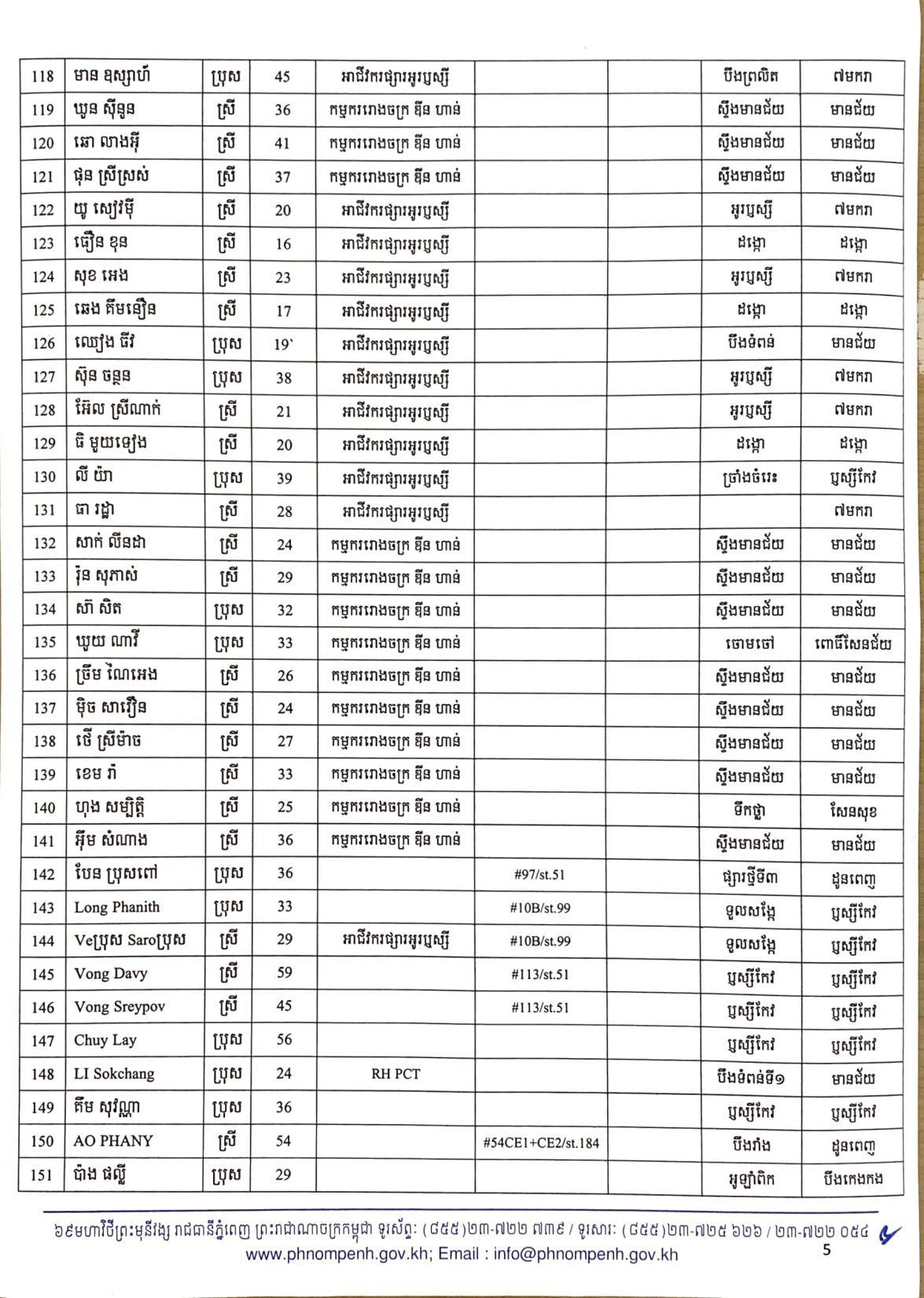 យោងតាមលិខិតរបស់ រដ្ឋបាលរាជធានីភ្នំពេញ បានធ្វើការបង្ហាញអត្តសញ្ញាណអ្នកវិជ្ជមានកូវីដ១៩ ទាំង៤០២នាក់នៅក្នុងរាជធានីភ្នំពេញ ក្នុងនោះមានអាជីវករ ដែលលក់ដូរនៅក្នុងផ្សារអូរឬស្សីជាច្រើនកន្លែងចំនួន៦៧នាក់ផងដែរ៕