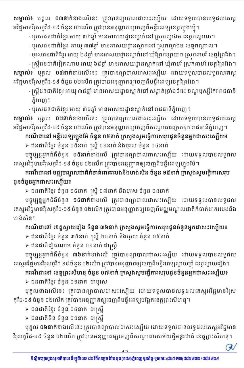 រាជធានីភ្នំពេញថ្ងៃនេះ មានអ្នកឆ្លងកូវីដ១៩ថ្មី ១៤១នាក់បន្ថែមទៀត