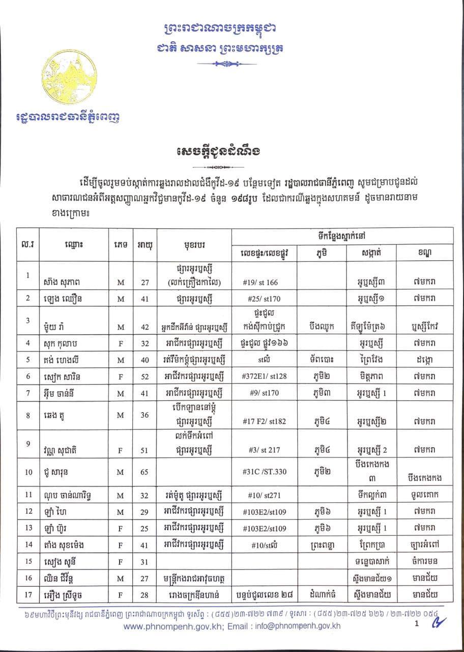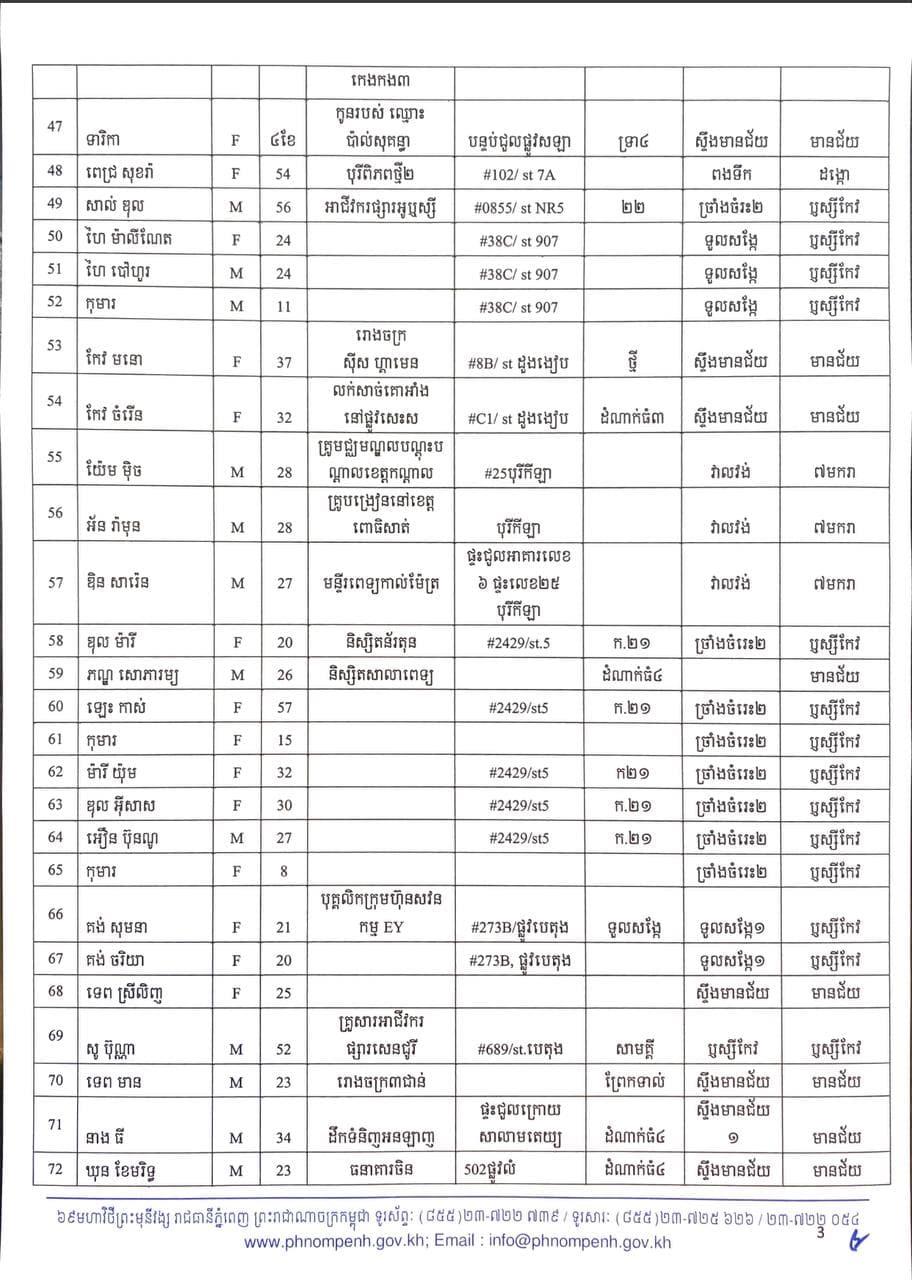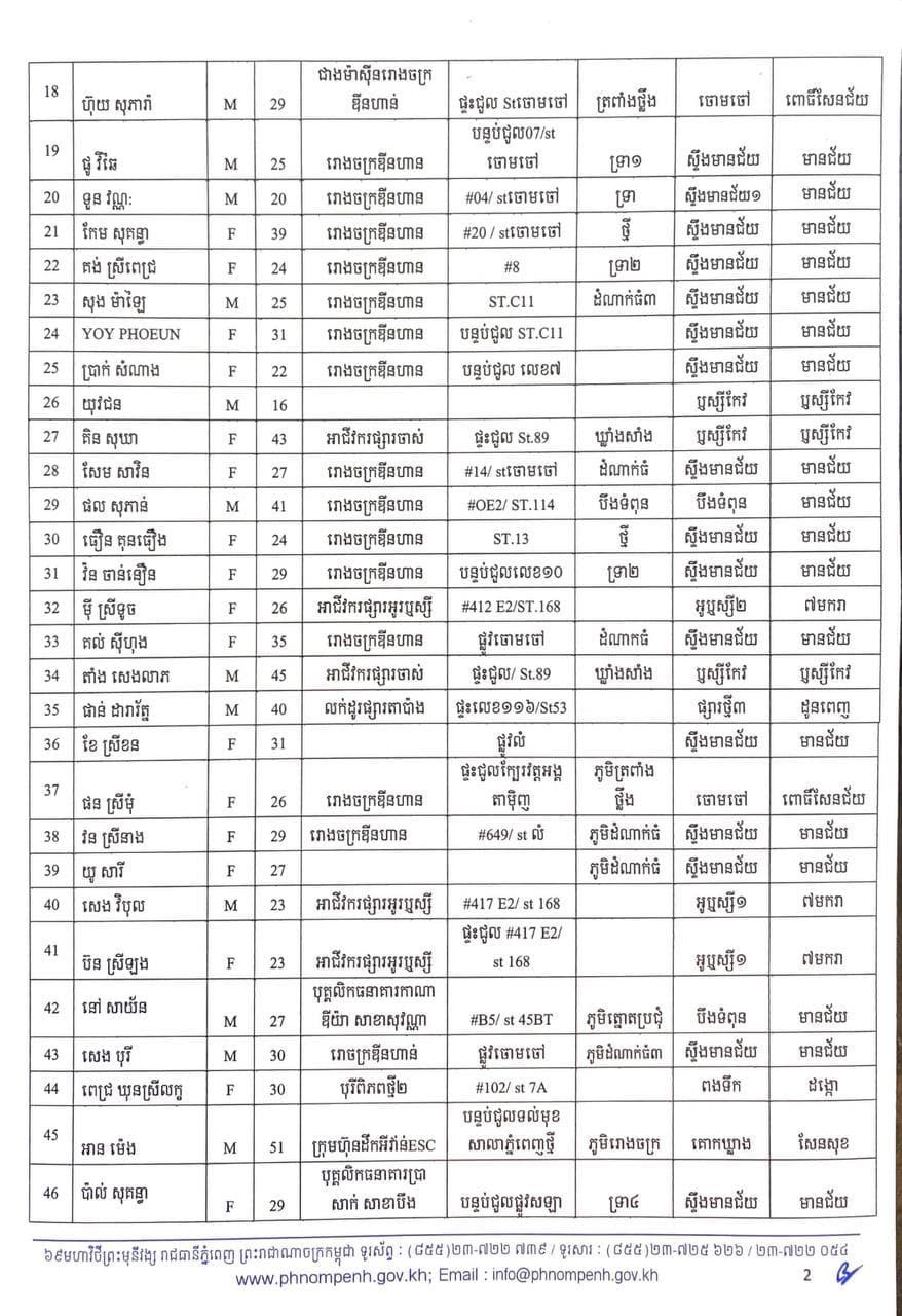 អ្នកពាក់ព័ន្ធផ្សារអូរឬស្សីចំនួន៣៦នាក់ទៀត ដែលឆ្លងកូវីដ១៩ ត្រូវបានរដ្ឋបាលរាជធានីភ្នំពេញបង្ហាញអត្តសញ្ញាណ, មានទាំងអ្នកលក់ទឹកអំពៅ អ្នករត់ម៉ូតូឌុបទៀត