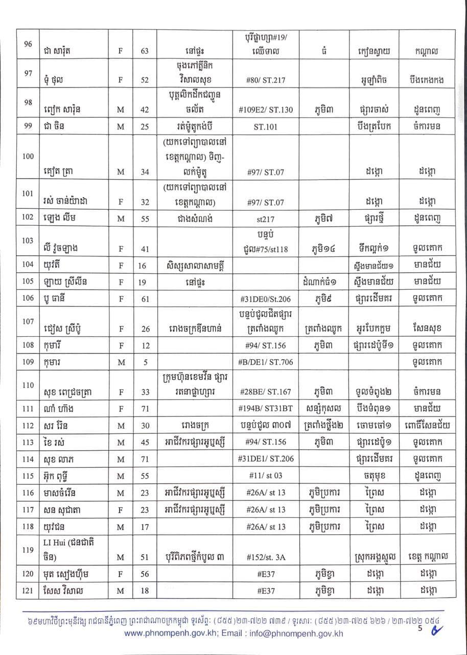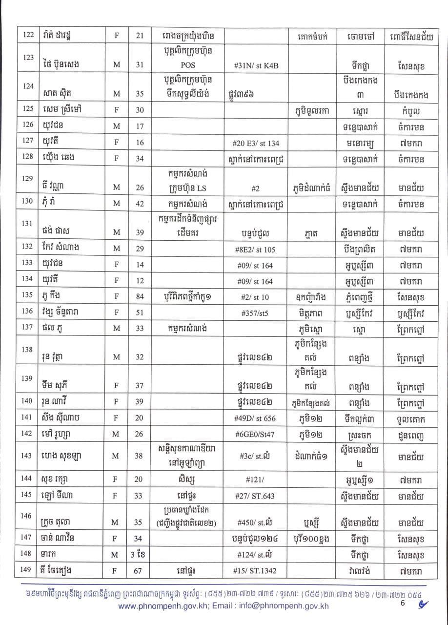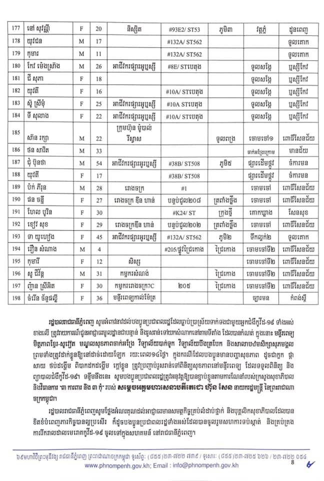 អ្នកពាក់ព័ន្ធផ្សារអូរឬស្សីចំនួន៣៦នាក់ទៀត ដែលឆ្លងកូវីដ១៩ ត្រូវបានរដ្ឋបាលរាជធានីភ្នំពេញបង្ហាញអត្តសញ្ញាណ, មានទាំងអ្នកលក់ទឹកអំពៅ អ្នករត់ម៉ូតូឌុបទៀត