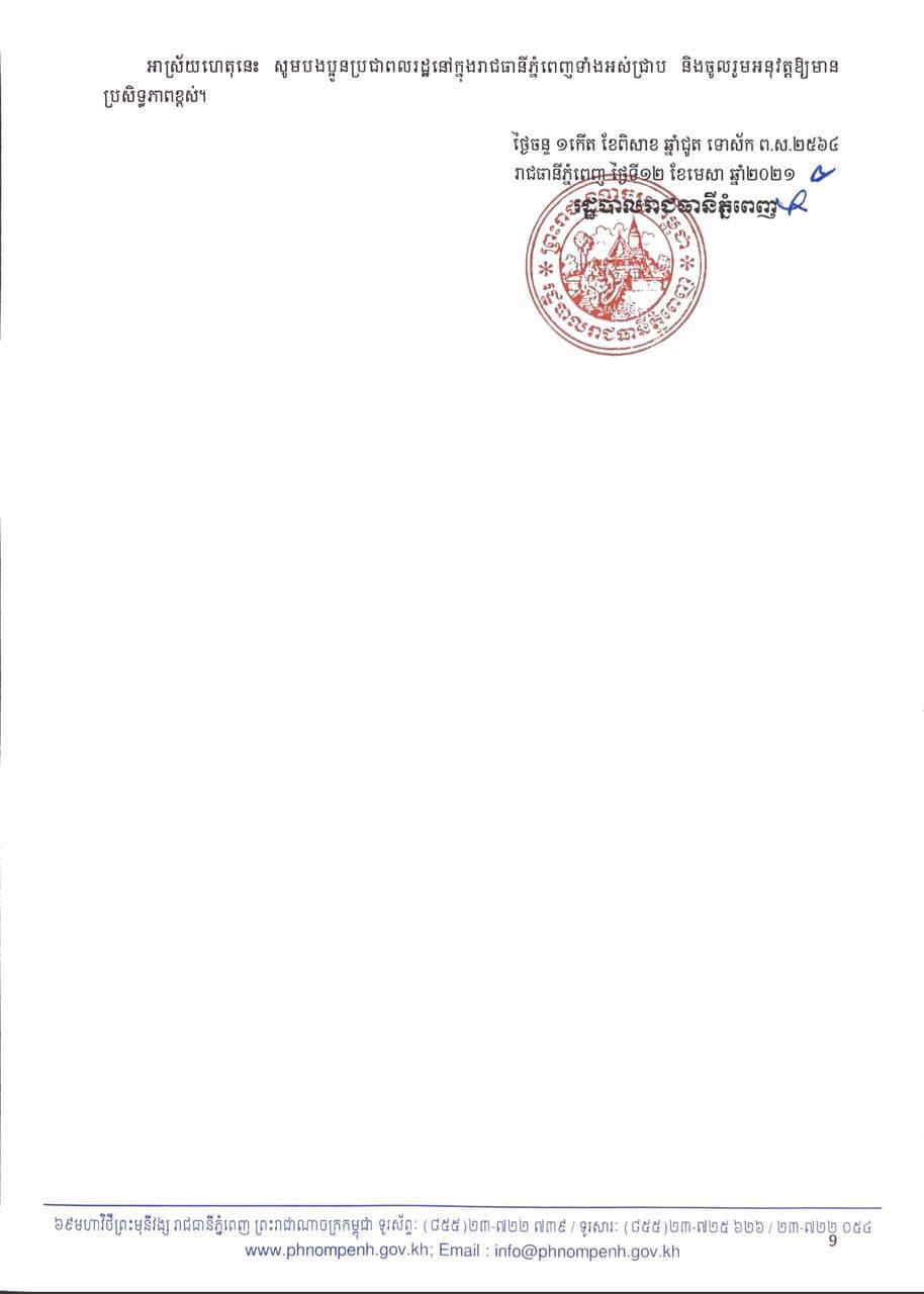 នៅព្រឹកថ្ងៃទី១២ ខែមេសា ឆ្នាំ២០២១នេះ ក្រសួងសុខាភិបាលកម្ពុជា បានចេញសេចក្តីជូនដំណឹងពី ការរកឃើញករណីវិជ្ជមានវីរុសកូវីដ១៩ថ្មី ចំនួន ២៧៧នាក់ និងមានករណីជាសះស្បើយថ្មីចំនួន ៦០នាក់ផងដែរ។ យោងតាមសេចក្តីប្រកាសរបស់ក្រសួងសុខាភិបាល បានបញ្ជាក់ថា អ្នកវិជ្ជមានទាំង ២៧៧នាក់នោះ គឺ ជាអ្នកពាក់ព័ន្ធព្រឹត្តិការណ៍ សហគមន៍២០កុម្ភៈ ទាំងអស់។