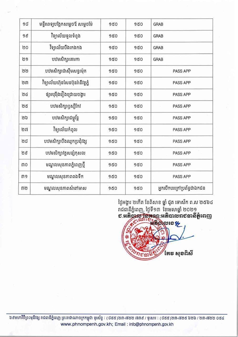 រដ្ឋបាលរាជធានីភ្នំពេញ បង្ហាញទីតាំងចំនួន៣២កន្លែង សម្រាប់ធ្វើការចាក់វ៉ាក់សាំងជូនអ្នករត់ម៉ូតូកង់បី (ក្រុមហ៊ុន និងឯកជន)