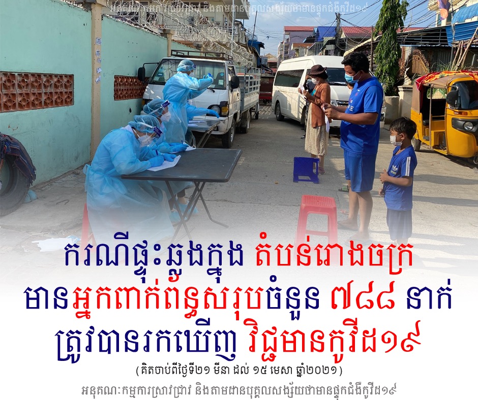 Update – គិតត្រឹមថ្ងៃទី១៥ ខែមេសា អ្នកឆ្លងកូវីដ១៩ នៅផ្សារចាស់កើនដល់២៣នាក់ ខណៈចំនួនឆ្លងនៅតាមរោងចក្រ ៣៦ទីតាំង កើនដល់ ៧៨៨នាក់ហើយ