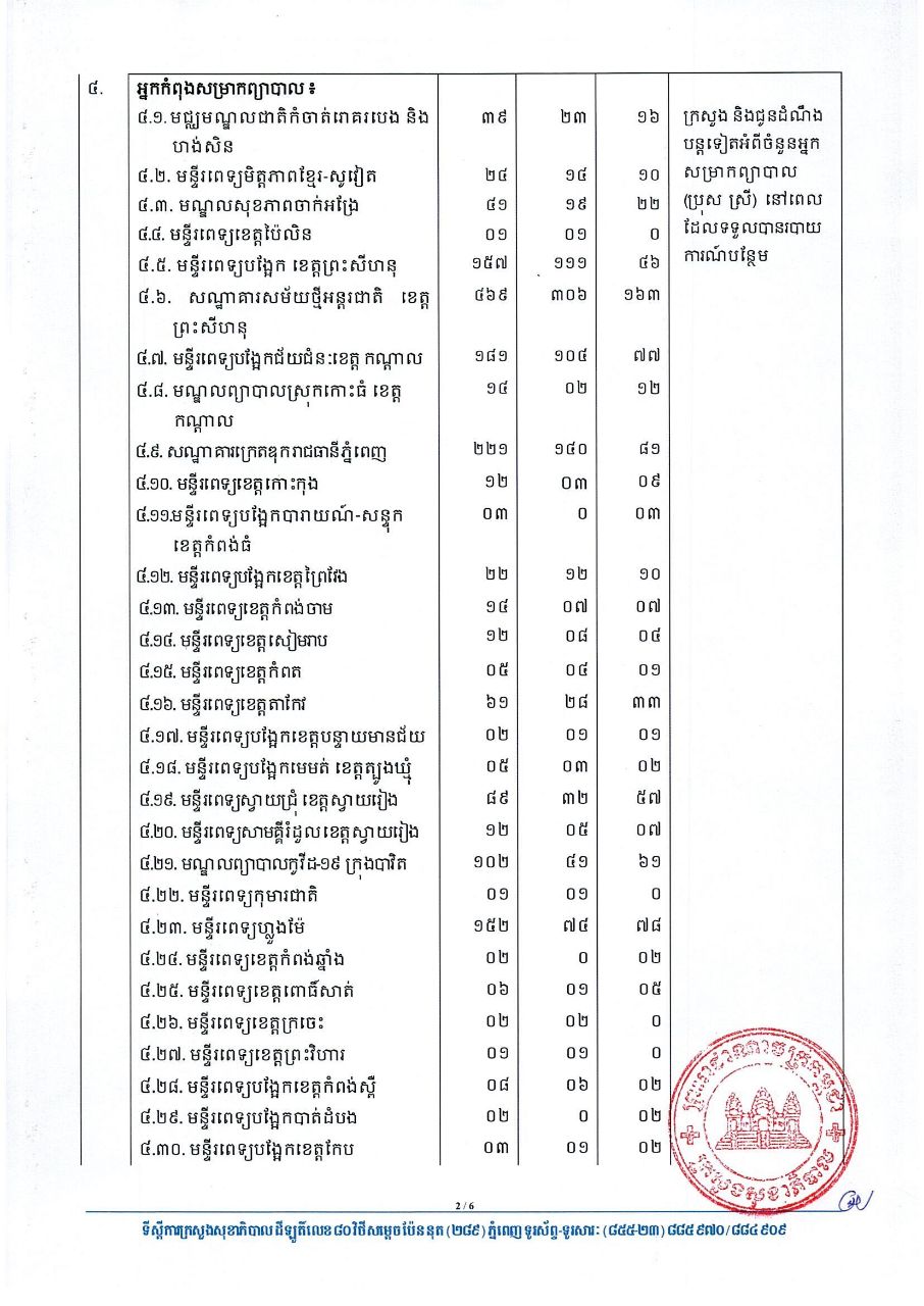 ថ្ងៃនេះ នៅតែបន្តរកឃើញអ្នកឆ្លងកូវីដ ចំនួន៦៥៥នាក់ថែមទៀត និងជាសះស្បើយ ២២៤នាក់