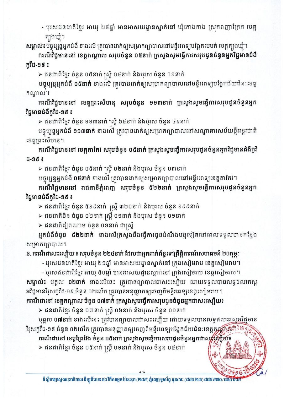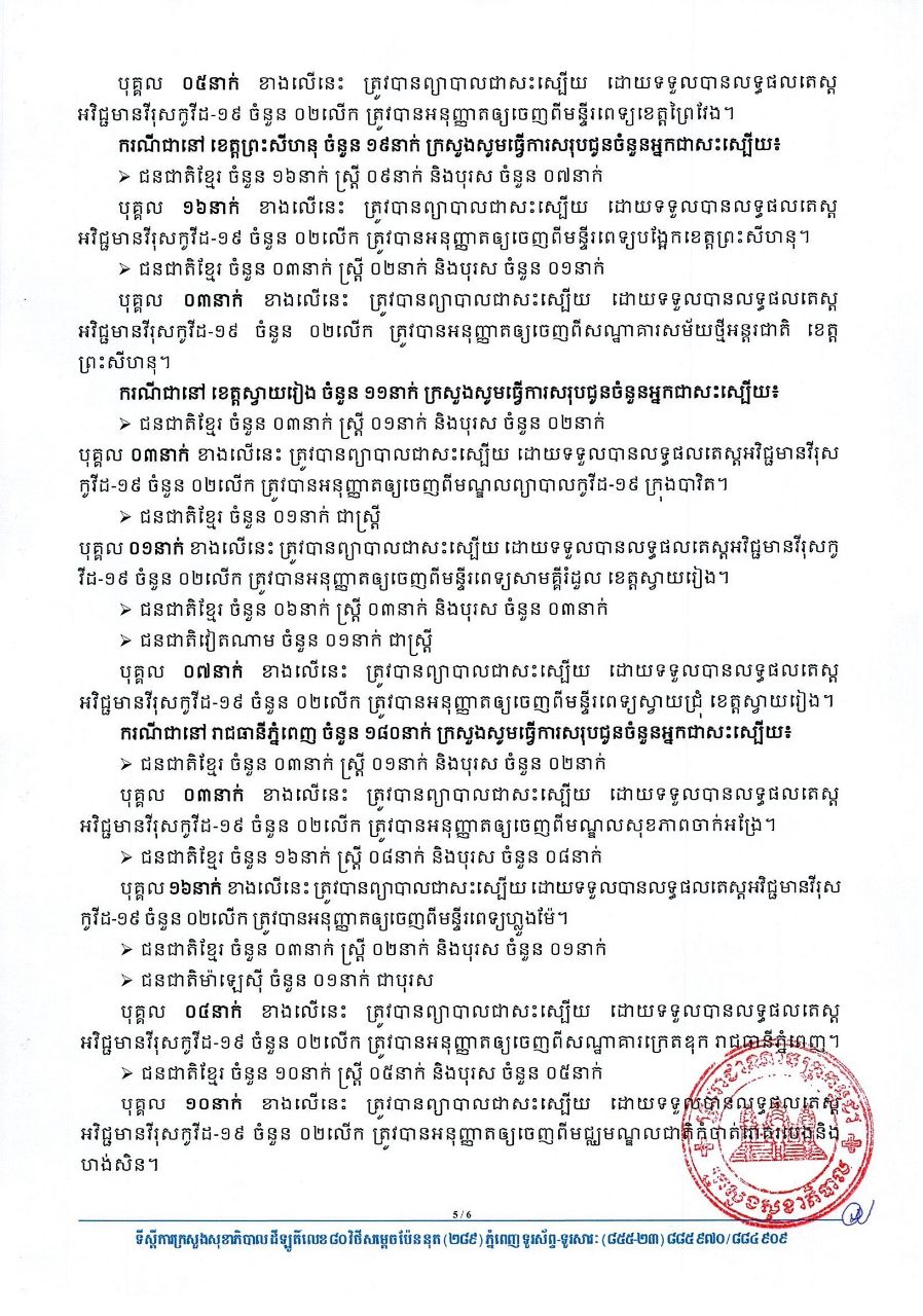 យោងតាមសេចក្តីប្រកាសរបស់ក្រសួងសុខាភិបាល បានបញ្ជាក់ថា អ្នកវិជ្ជមានទាំង៦៥៥នាក់នោះ គឺមាន ០១នាក់ជាពលករមកពីប្រទេសថៃ និង៦៥៤នាក់ទៀត ជាអ្នកពាក់ព័ន្ធព្រឹត្តិការណ៍ សហគមន៍២០កុម្ភៈ។ សូមអានសេចក្តីជូនព័ត៌មាននៅខាងក្រោម៖