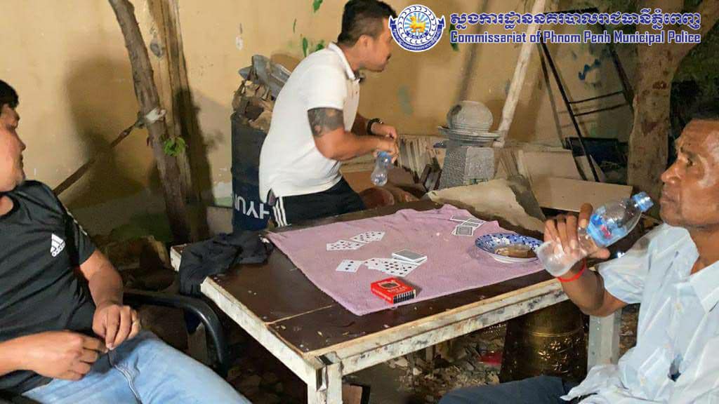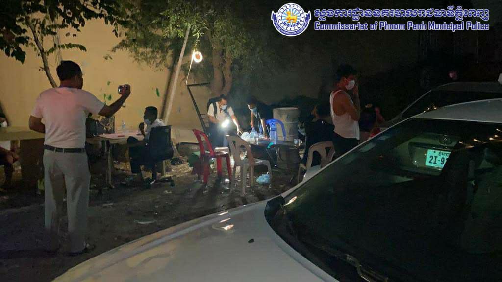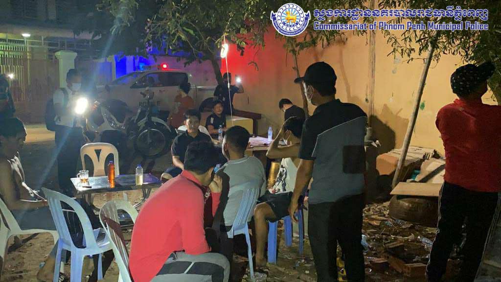 គ្មានខ្លាចឆ្លងកូវីដស្អីសោះ! អធិការដ្ឋាននគរបាលខណ្ឌជ្រោយចង្វារ ឃាត់ខ្លួន១៤នាក់ ជួបជុំលេងល្បែង ផឹកស៊ី ល្មើសវិធានការសុខាភិបាល