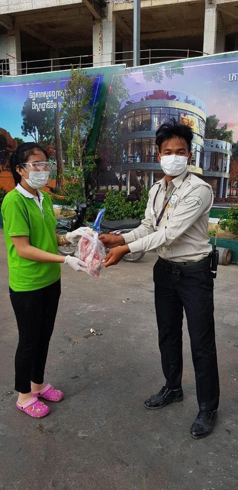 “នេះគឺជាសកម្មភាពរបស់ខ្ញុំជាបន្តបន្ទាប់ក្នុងការ ចូលរួមចំណែកជាមួយនិងសប្បុរសជន ដេីម្បីជួយសម្រាលបន្ទុកអាជ្ញាធររាជធានីភ្នំពេញផង កន្លងមកបានចែករំលែកសាច់ជ្រូកជូនអោយទៅដល់ដៃ ប្រជាពលរដ្ឋដែលកំពុងតែជាបំរាមហេីយពួកគាត់កំពុងតែជួបការលំបាកខ្វះខាតស្បៀងអាហារ ។”