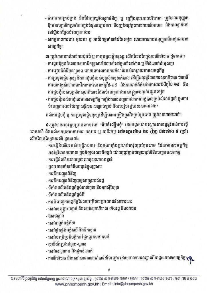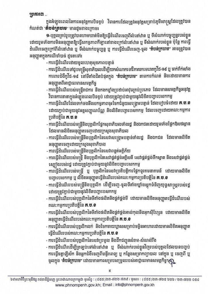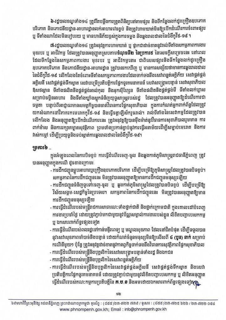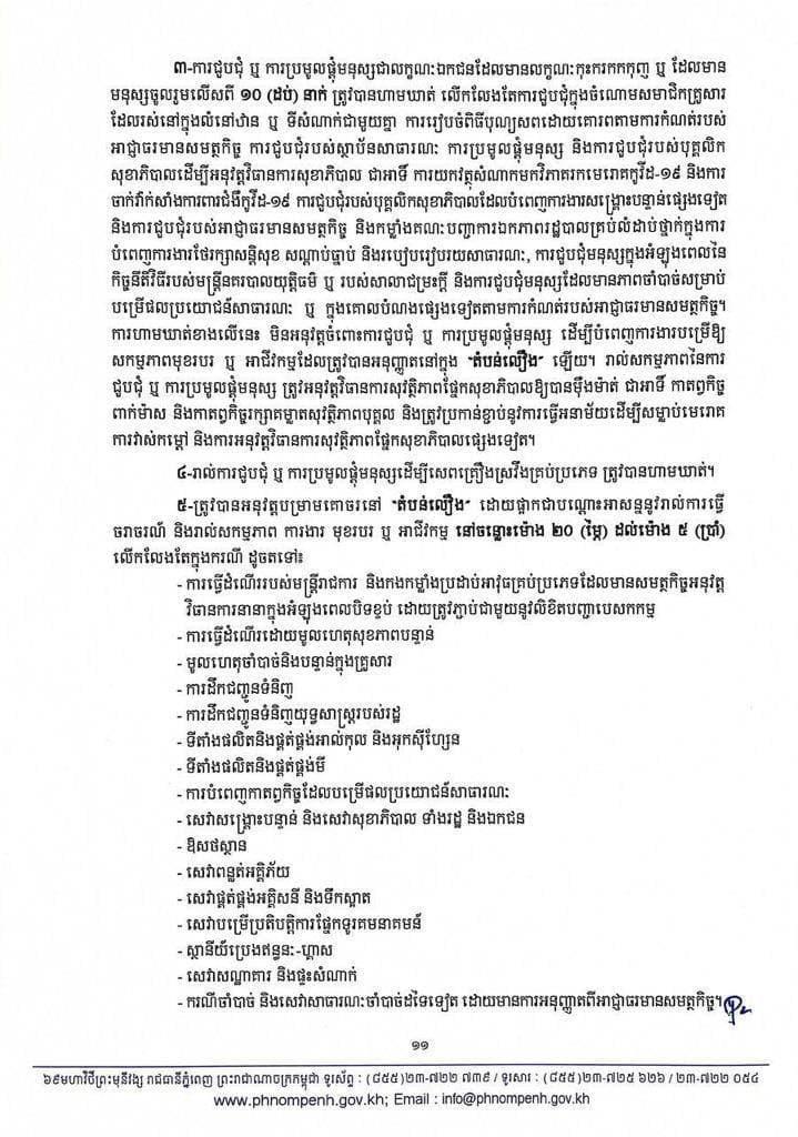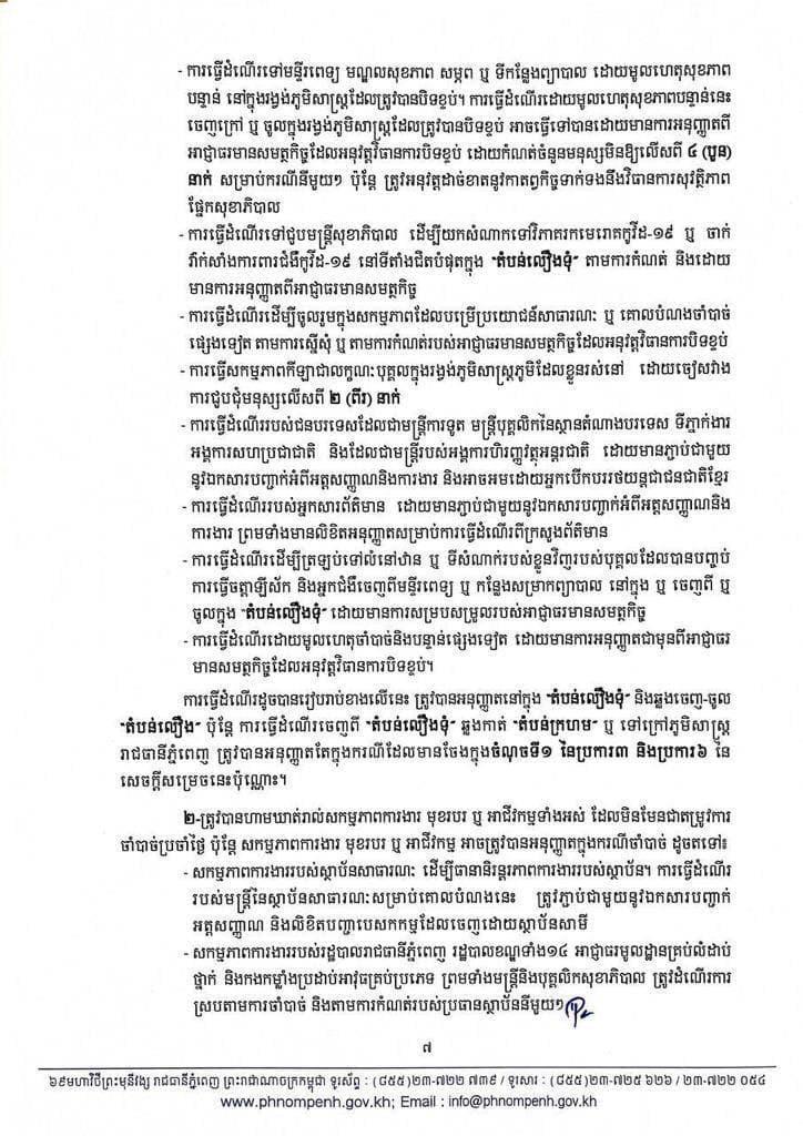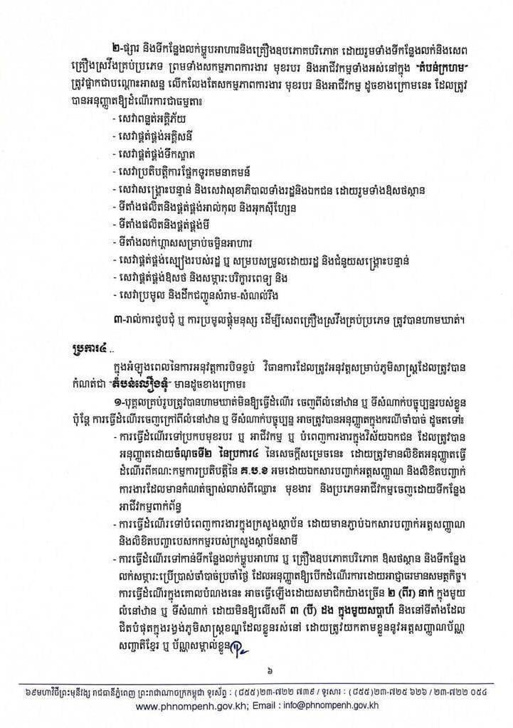 រដ្ឋបាលរាជធានីភ្នំពេញ នៅល្ងាចថ្ងៃអង្គារ ទី២៧ ខែមេសា ឆ្នាំ២០២១នេះ បានប្រកាសជាផ្លូវការហើយនូវការកំណត់ និងបែងចែកតំបន់ ដែលជា «តំបន់ក្រហម», «តំបន់លឿងទុំ» និង «តំបន់លឿង»។