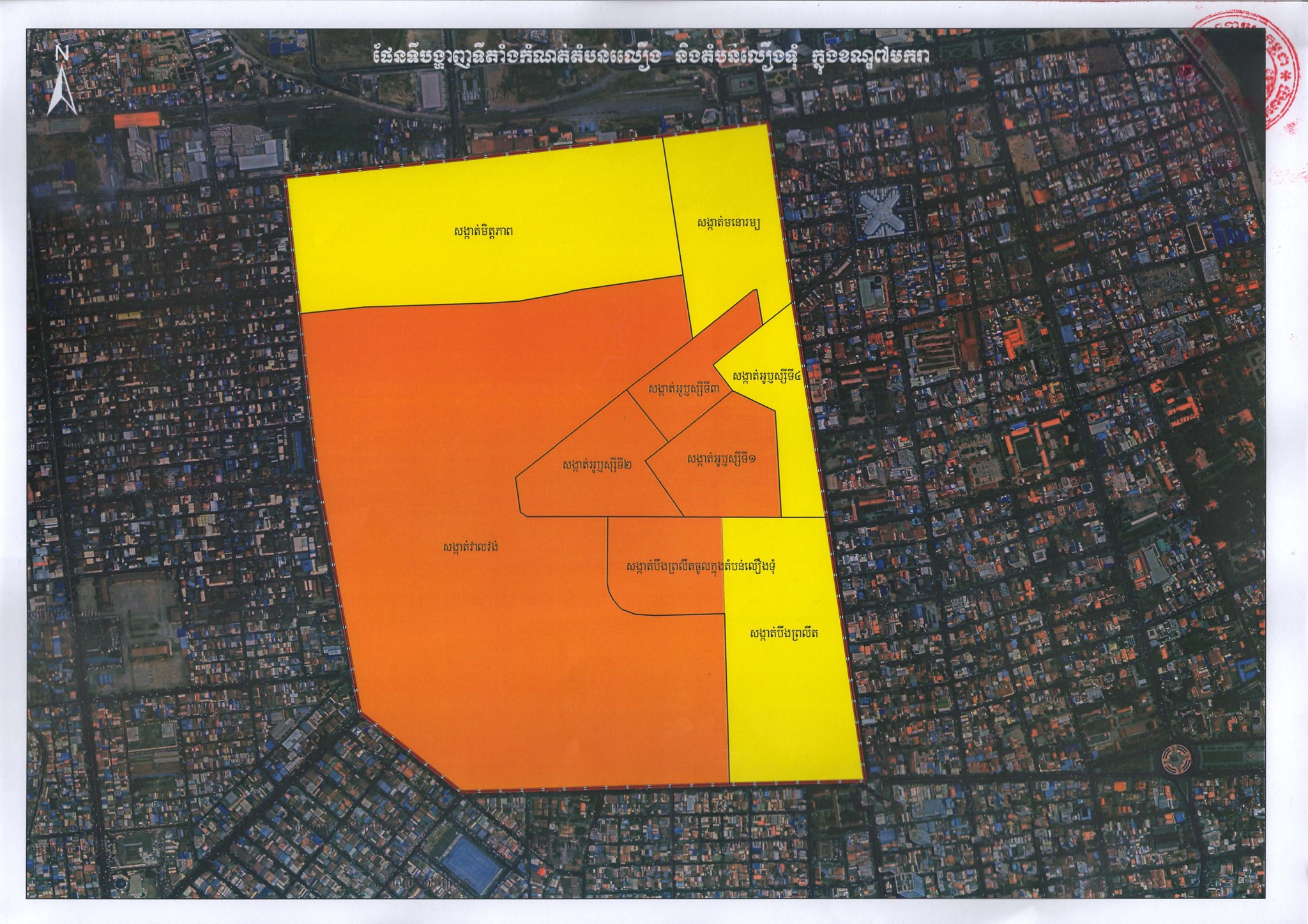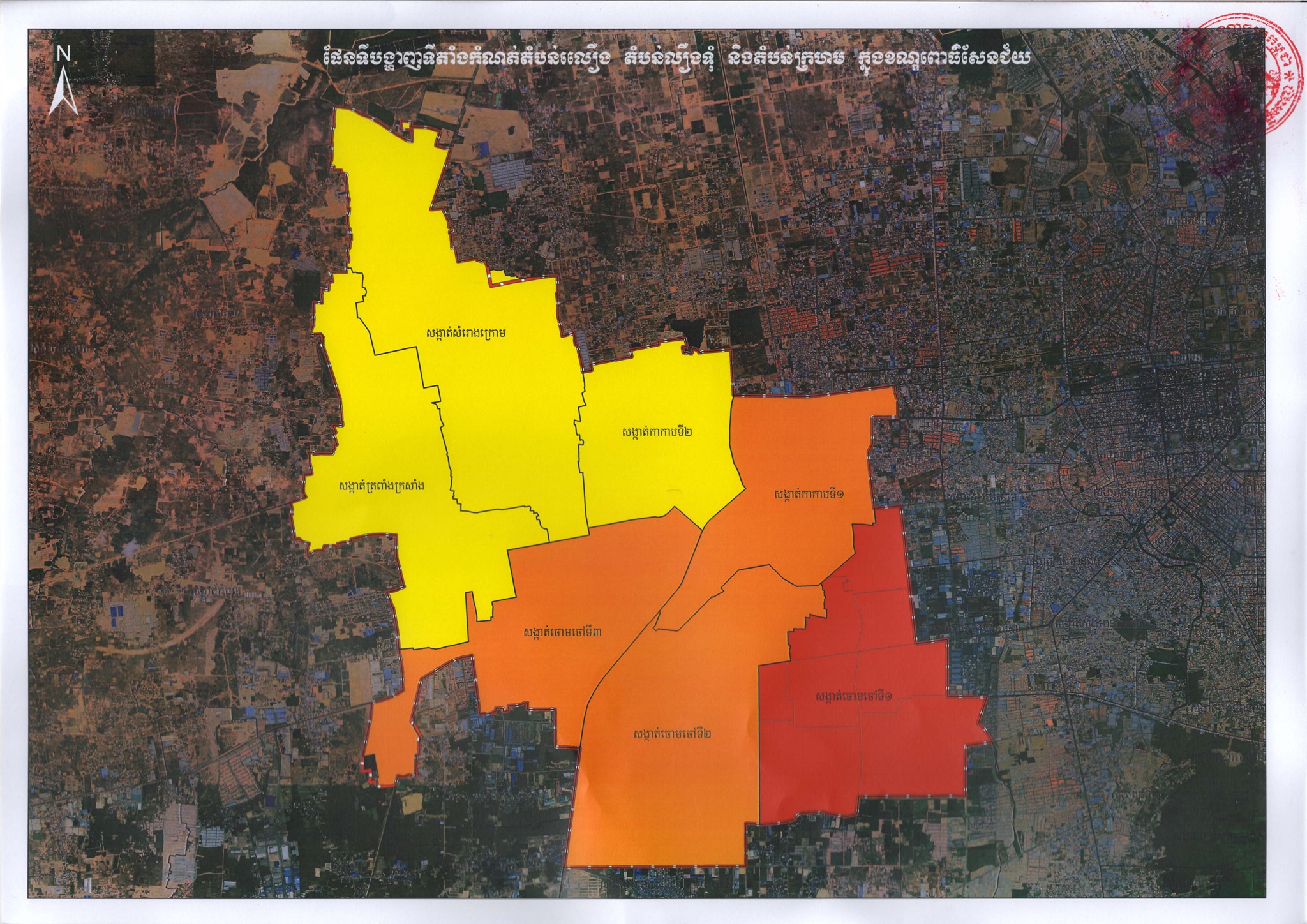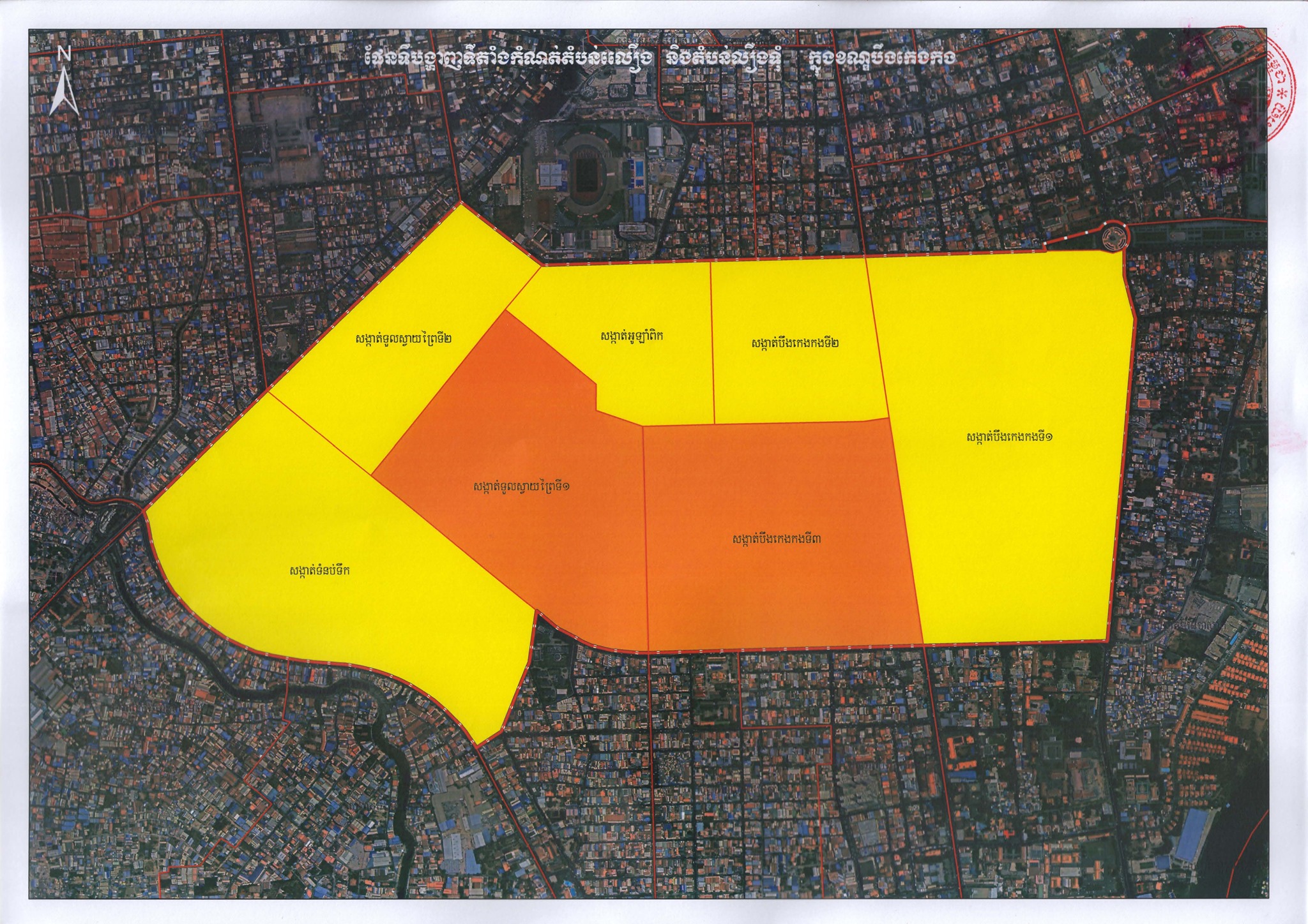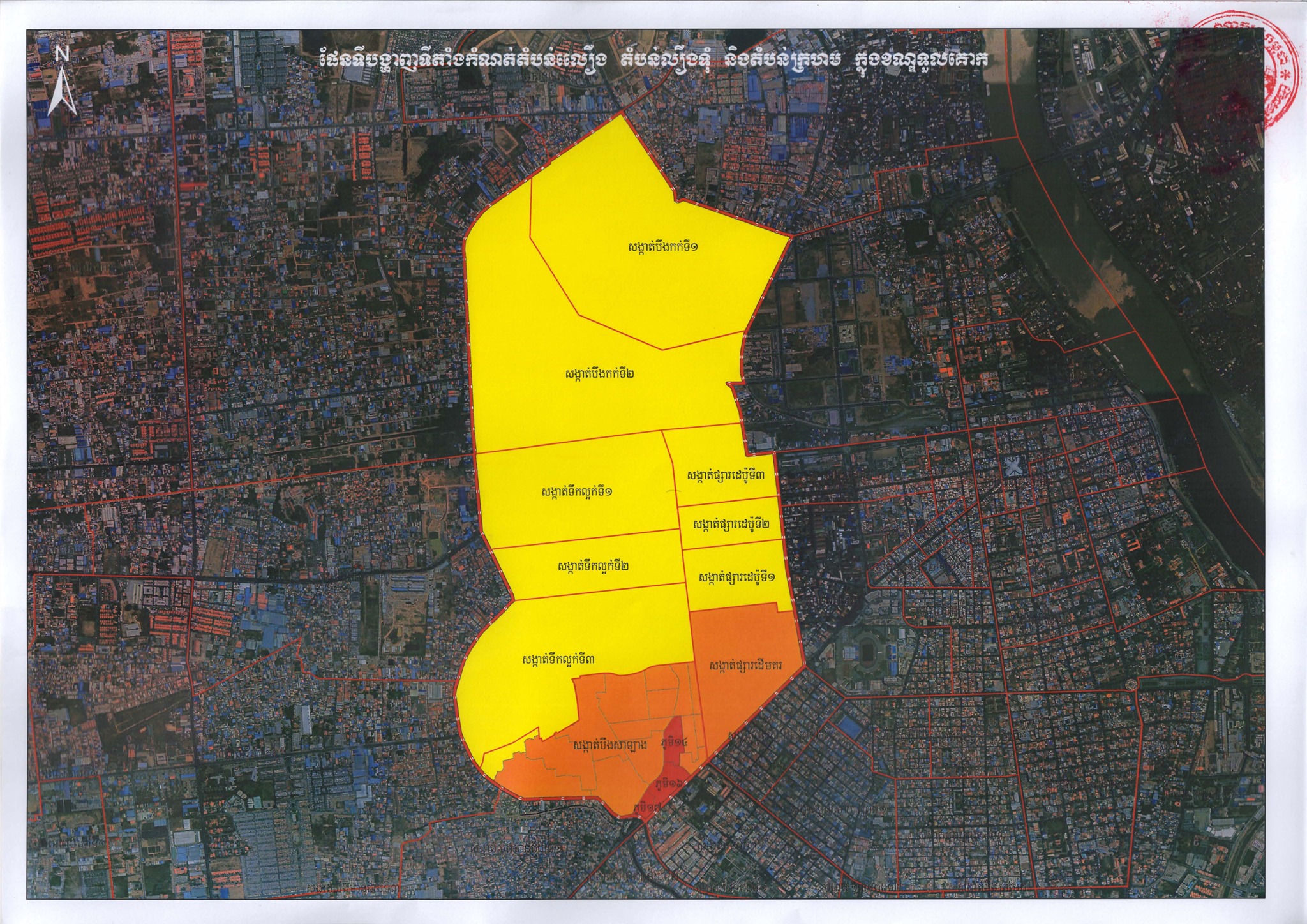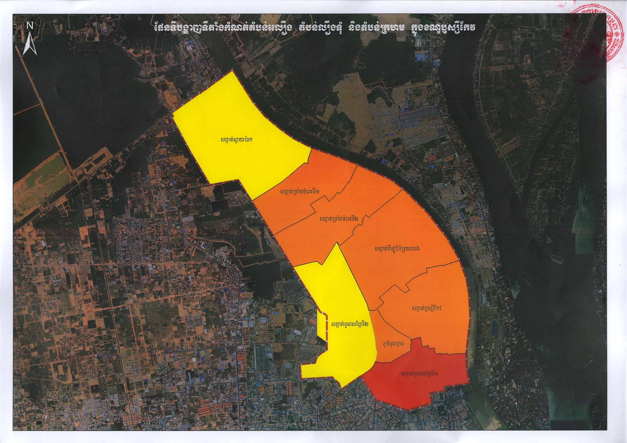 ផែនទីផ្លូវការនៃការបែងចែក “តំបន់ក្រហម” “តំបន់លឿងទុំ” និង “តំបន់លឿង” នៅរាជធានីភ្នំពេញ