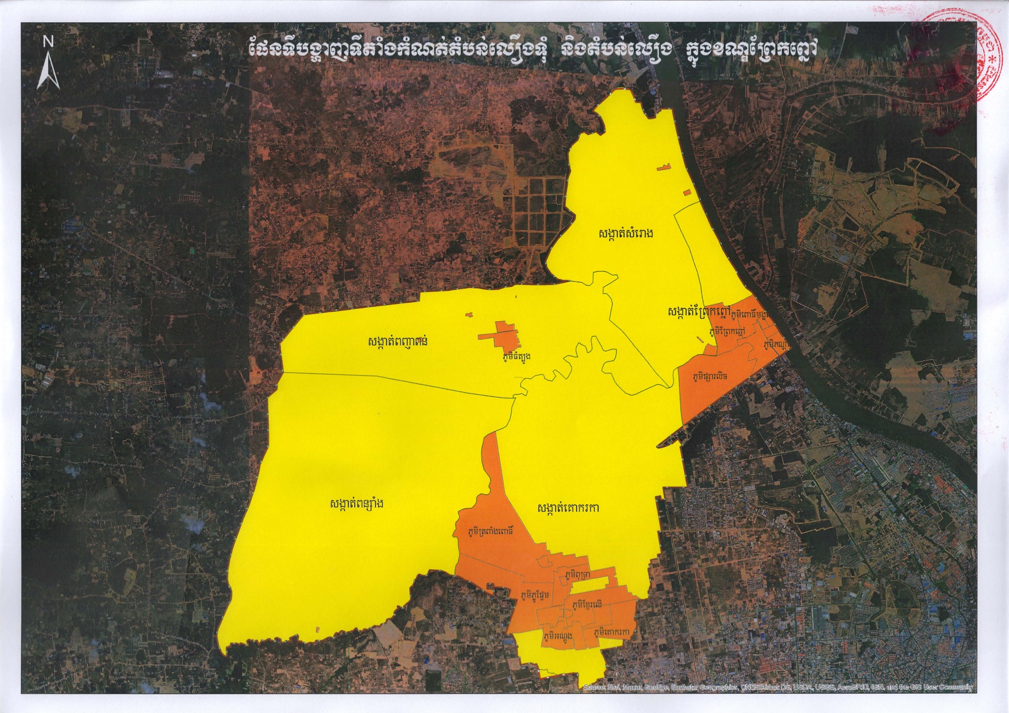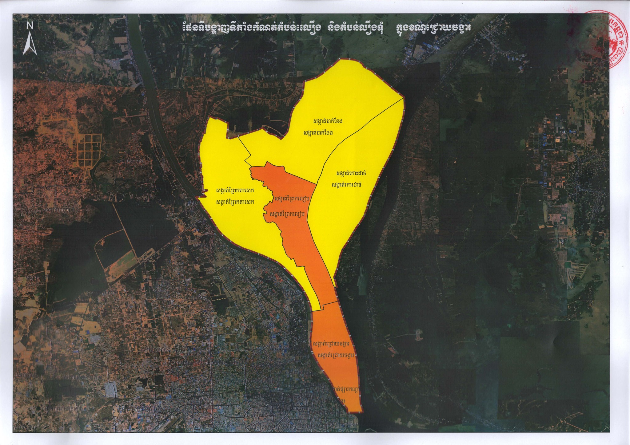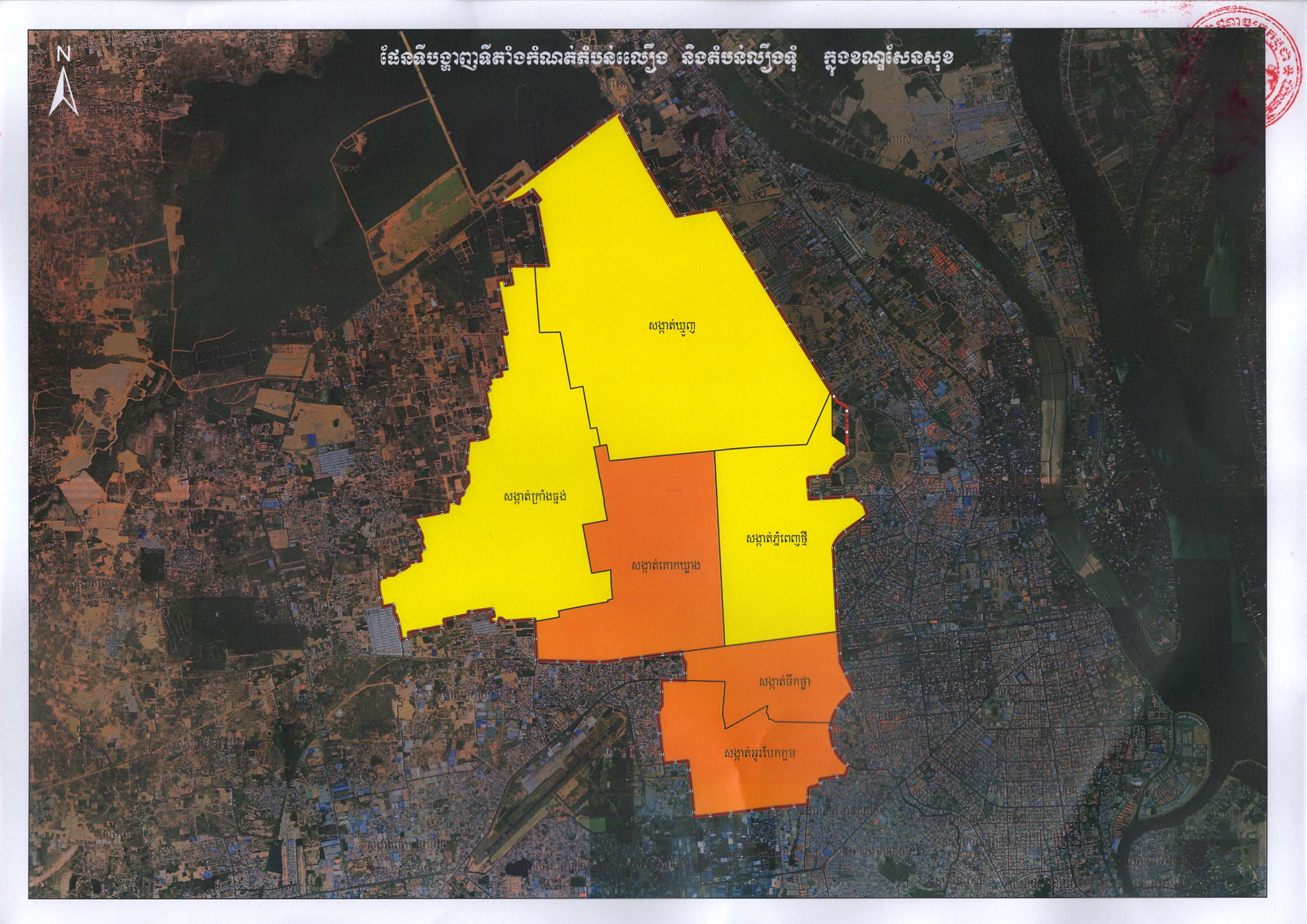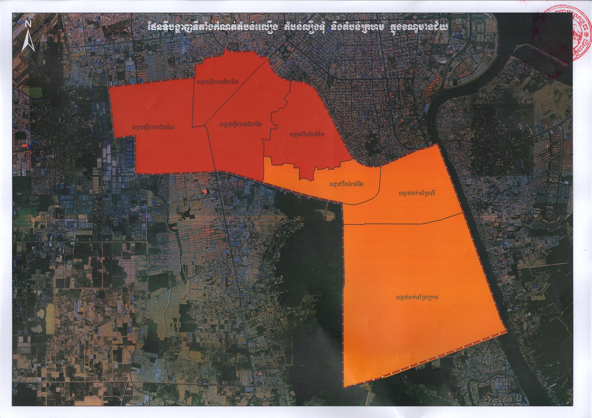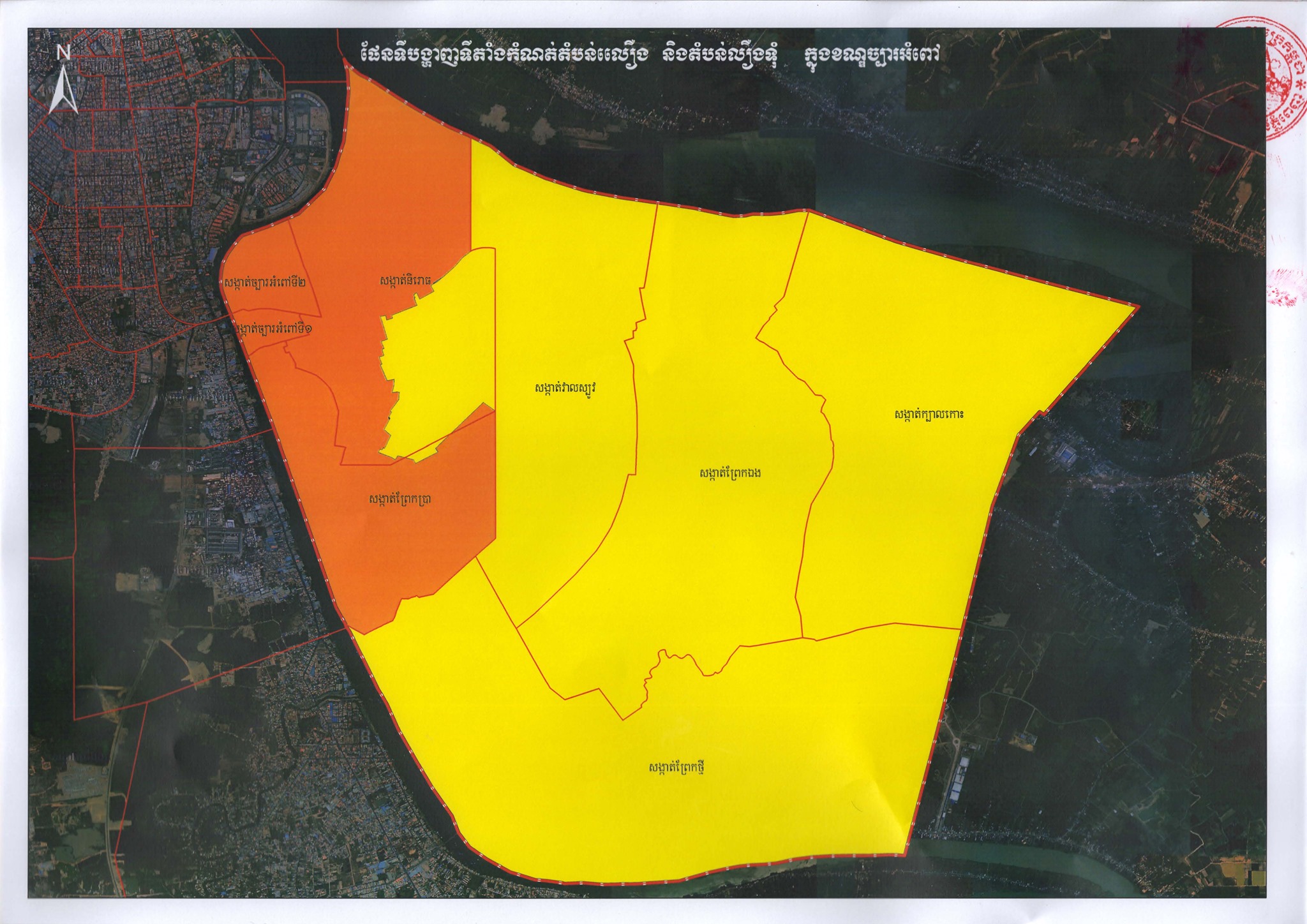 ផែនទីផ្លូវការនៃការបែងចែក “តំបន់ក្រហម” “តំបន់លឿងទុំ” និង “តំបន់លឿង” នៅរាជធានីភ្នំពេញ