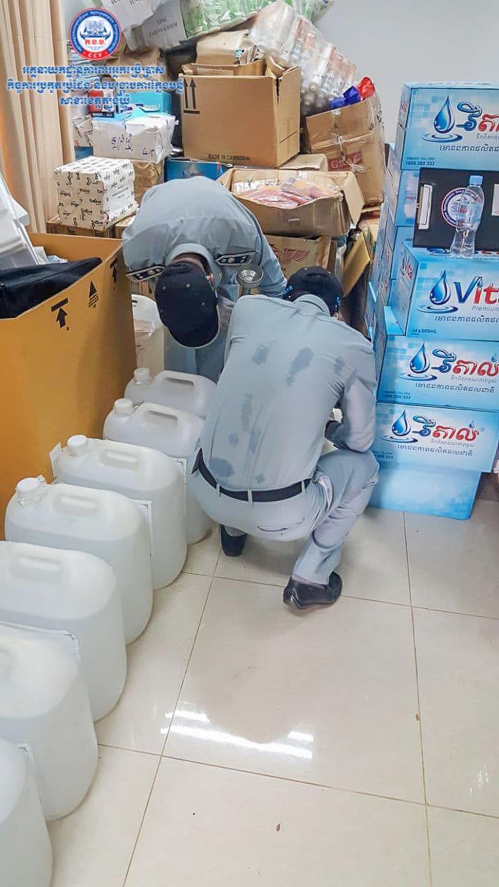 ក្រោយការធ្វើតេស្តរួច មន្ត្រីជំនាញសាខា ក.ប.ប. បានរកឃើញ និងរឹបអូសអាល់កុលសម្លាប់មេរោគក្លែងក្លាយ (មេតាណុល) ចំនួន​ ៦៣០​លីត្រ​ មករក្សាទុកដេីម្បីអនុវត្តនីតិវិធីបន្ត ៕