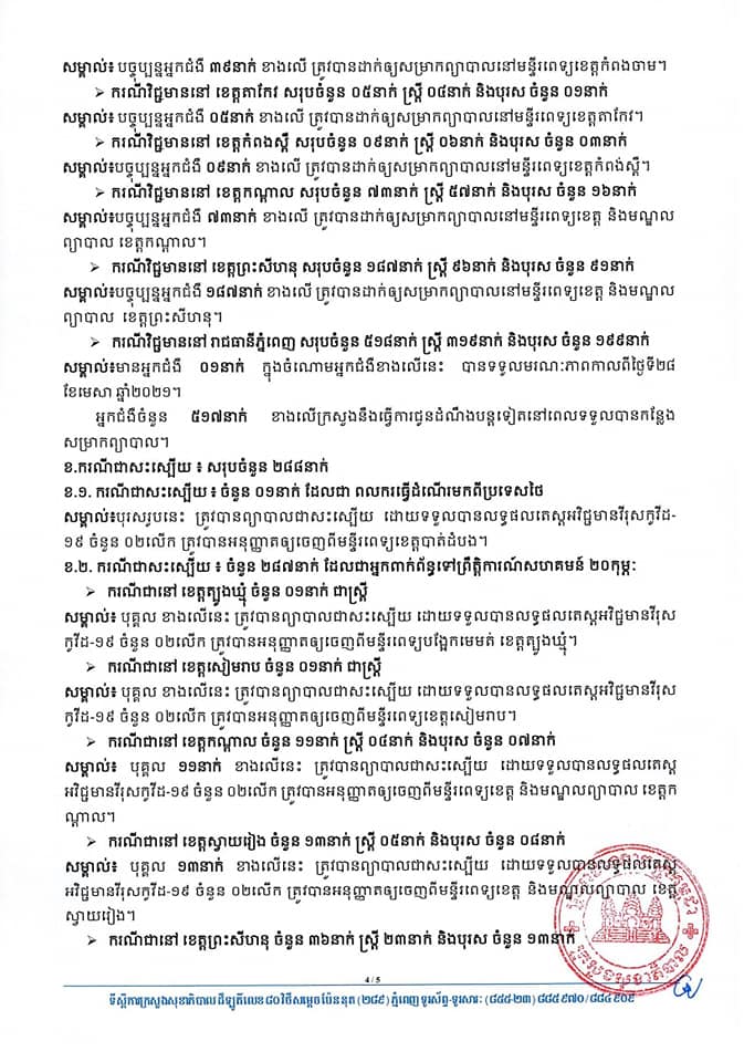 ថ្ងៃនេះ រកឃើញអ្នកឆ្លងកូវីដ១៩ថ្មី ៨៨០នាក់ ដែលជាចំនួនច្រើនបំផុតមិនធ្លាប់មានពីមុនមក