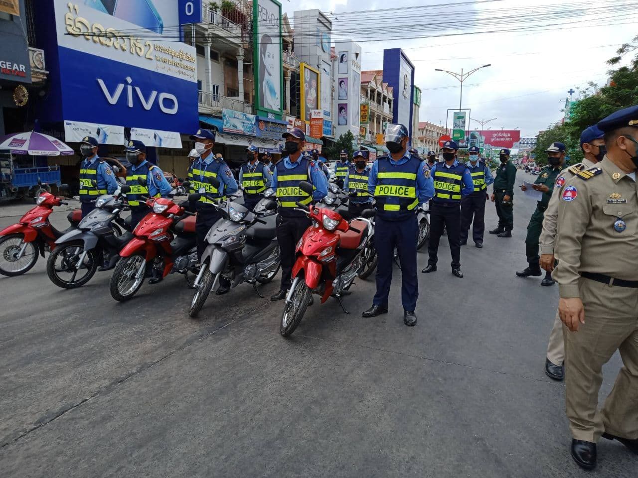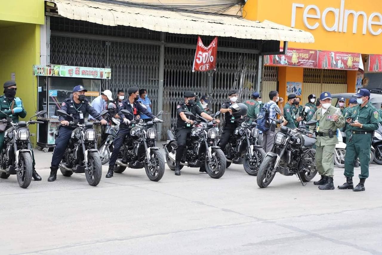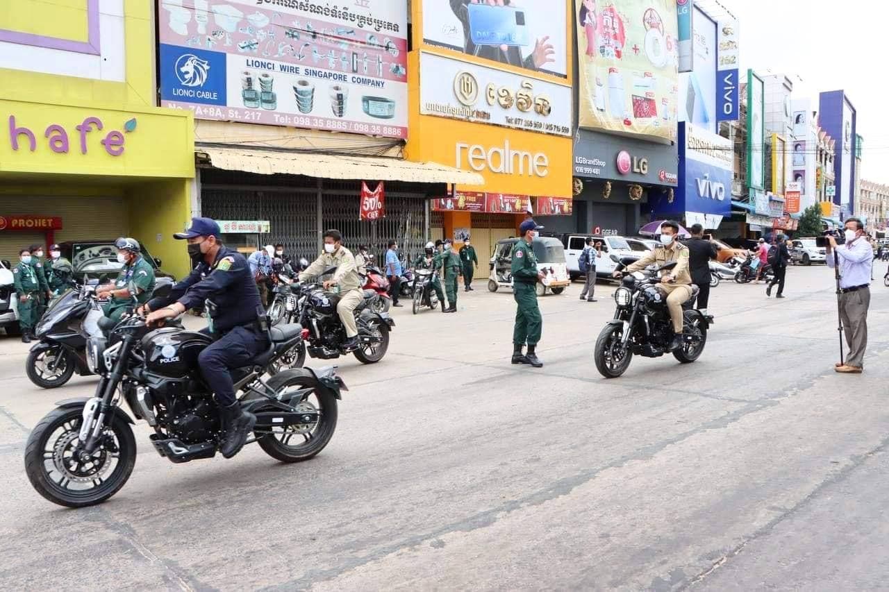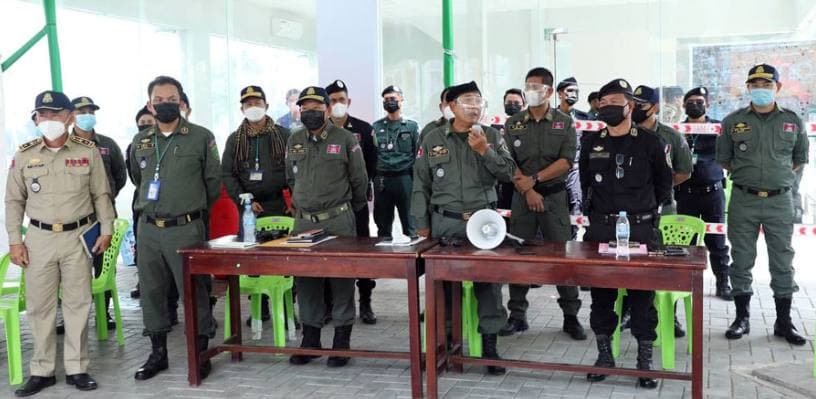 រាជធានីភ្នំពេញ៖ នាព្រឹកថ្ងៃទី២៩ ខែមេសា ឆ្នាំ២០២១ ឯកឧត្តម ឧត្តមសេនីយ៍ឯក ឆាយ គឹម ខឿន អគ្គស្នងការរងនគរបាលជាតិ តំណាងដ៏ខ្ពង់ខ្ពស់ ឯកឧត្តម នាយឧត្តមសេនីយ៍ សន្តិបណ្ឌិត នេត សាវឿន អគ្គស្នងការនគរបាលជាតិ បានអញ្ជើញចុះត្រួតពិនិត្យ ព្រមទាំងធ្វើការណែនាំនិងបែងចែកការងារដល់កងកម្លាំង តាមគោលដៅជាពិសេស គឺកម្លាំងអគ្គស្នងការដ្ឋាន នគរបាលជាតិ ដែលមានភារកិច្ចទទួលខុសត្រូវល្បាតក្នុងតំបន់ក្រហម តំបន់លឿងទុំ និង តំបន់លឿង ក្នុងភូមិសាស្ត្រចំនួន ០៥ខណ្ឌ គឺខណ្ឌទួលគោក ពោធិ៍សែនជ័យ ខណ្ឌមានជ័យ ខណ្ឌដង្កោ និងខណ្ឌសែនសុខ ដើម្បីអនុវត្តផែនការផ្អែកតាមខ្លឹមសារនៃសេចក្តីសម្រេចលេខ ៥៤សសរ ចុះថ្ងៃទី២៦ ខែមេសា ឆ្នាំ២០២១ របស់រាជរដ្ឋាភិបាលកម្ពុជា ស្ដីពីការបន្តបិទខ្ទប់ភូមិសាស្ត្ររាជធានីភ្នំពេញ និងក្រុងតាខ្មៅនៃខេត្តកណ្ដាល ក្នុងការបង្ការ ទប់ស្កាត់ ការឆ្លងរាលដាលនៃជម្ងឺកូវីដ-១៩។