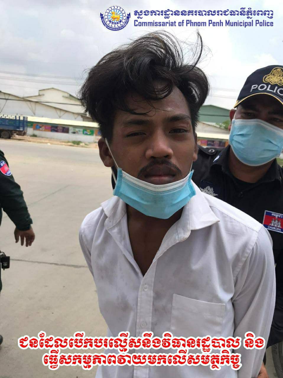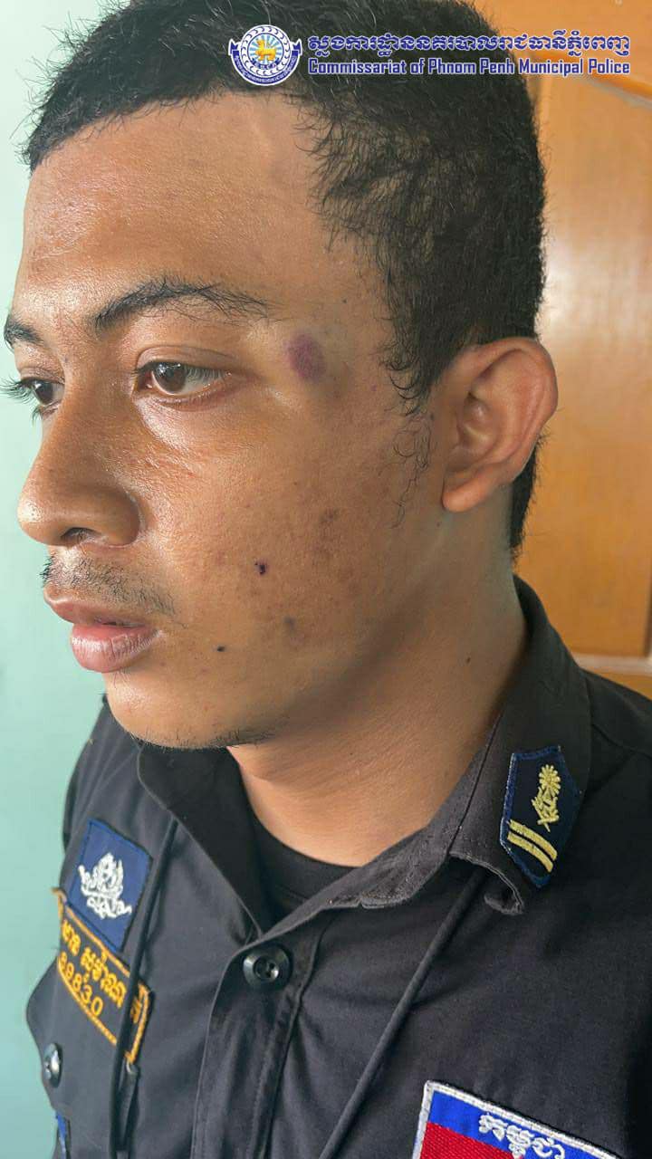 ពេលនោះកម្លាំងនគរបាលនៃអធិការដ្ឋាននគរបាលខណ្ឌ បានចូលទៅឃាត់ខ្លួនជនសង្ស័យ ក៏ត្រូវជនសង្ស័យវាយមកលើសមត្ថកិច្ចបណ្ដាលឲ្យកម្លាំងនគរបាលម្នាក់រងរបួស ទើបកម្លាំងនគរបាលធ្វើការឃាត់ខ្លួនយកមកសាកសួរនៅអធិការខណ្ឌ៕