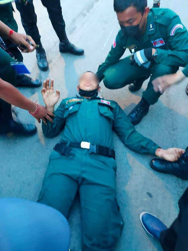 រាជធានីភ្នំពេញ៖ បុគ្គលិកដឹកជញ្ជូនអាហាររបស់ក្រុមហ៊ុន Foodpanda ម្នាក់បានបើកម៉ូតូគេចប៉ារាស់ត្រួតពិនិត្យរបស់សមត្ថកិច្ច ហើយបានជិះទៅបុកសមត្ថកិច្ចម្នាក់ ដែលកំពុងបំពេញតួនាទី បណ្តាលឲ្យដួលបោកនឹងថ្នល់រងរបួស។ ហេតុការណ៍នេះកើតឡើងកាលពីវេលា ៦ និង១៥នាទីល្ងាច ថ្ងៃទី០២ ខែឧសភា ឆ្នាំ២០២១នេះ នៅចំណុចផ្លូវ២១៧ ច្រមុះជ្រូកស្ទឹងមានជ័យ សង្កាត់ស្ទឹងមានជ័យ ខណ្ឌមានជ័យ រាជធានីភ្នំពេញ។